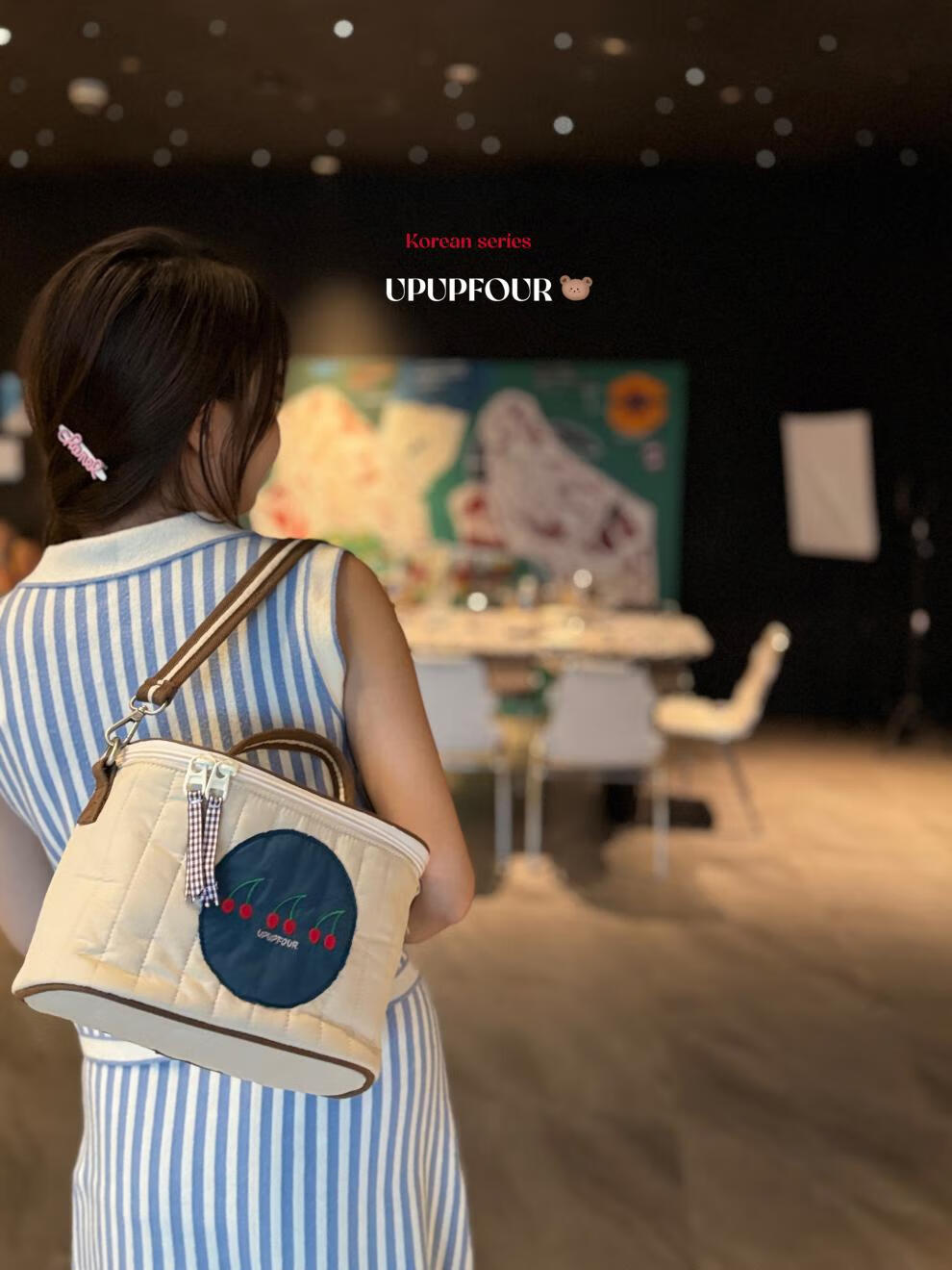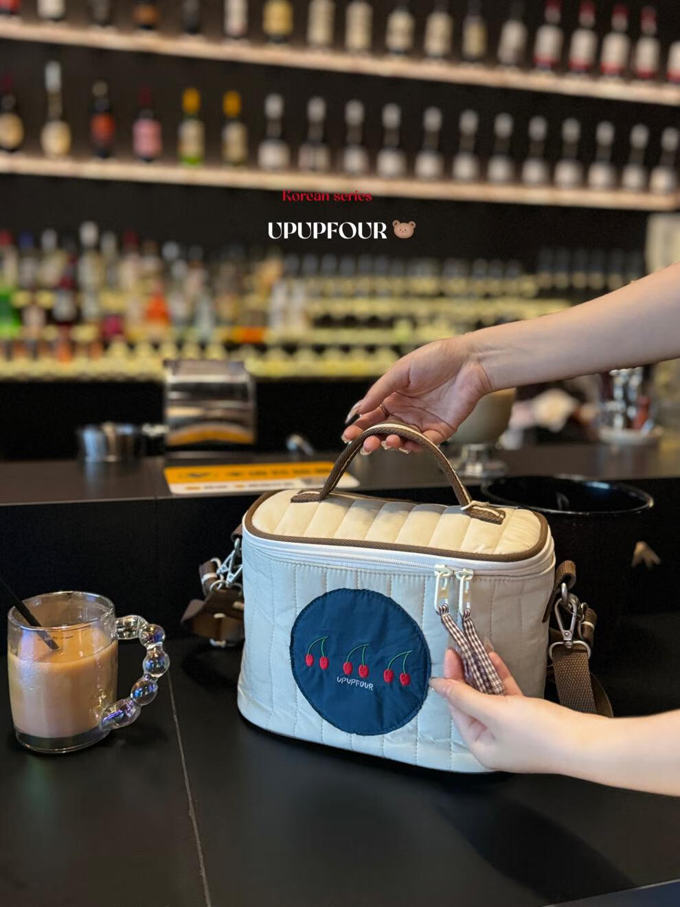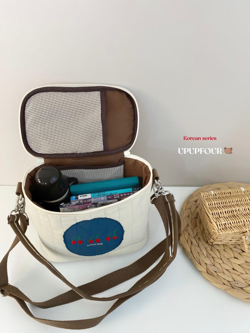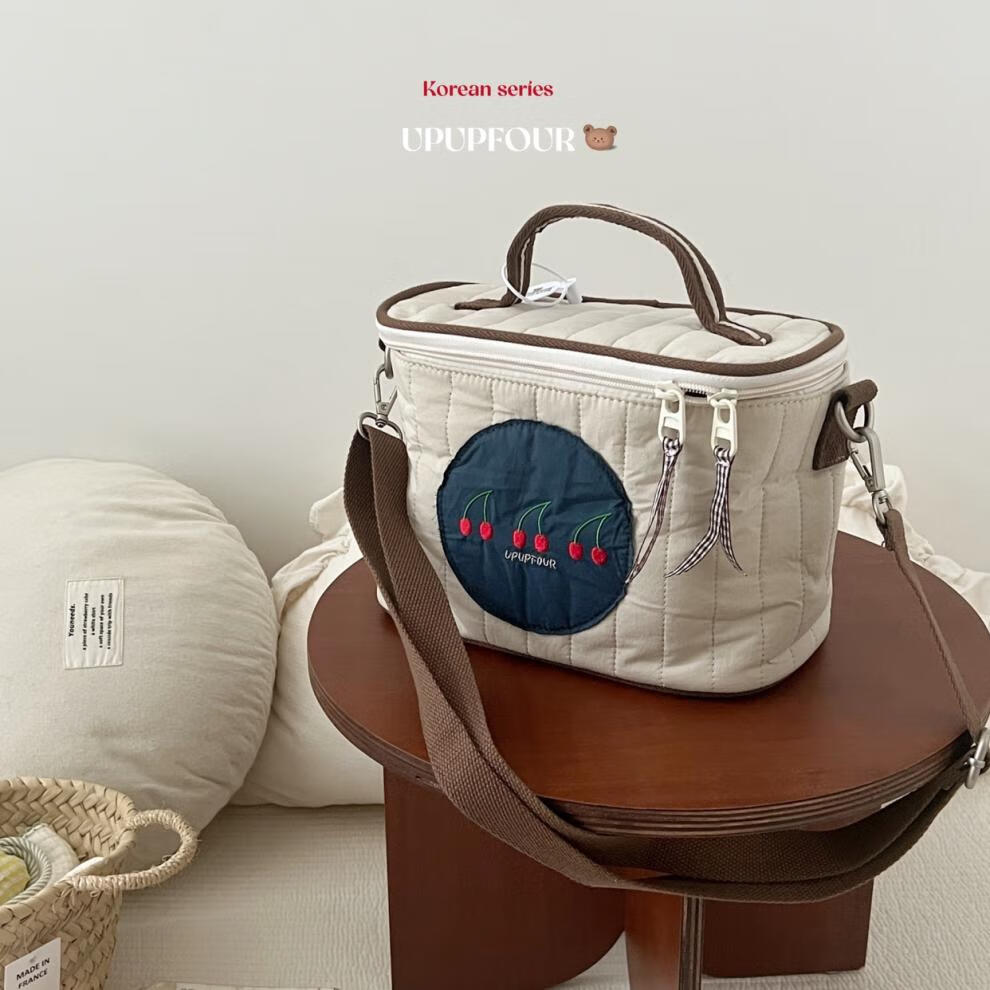 Jiabaixing upupfour Umhängetasche, Hand-Kinderwagen-Aufbewahrungstasche, Kinderwagen-Tasche, hängende Lunch-Tasche, Picknick-Tasche, Mama-Tasche, Kirsch-Retro-Tasche, zwei Arten von Schultergurten (koreanischer Stoff)