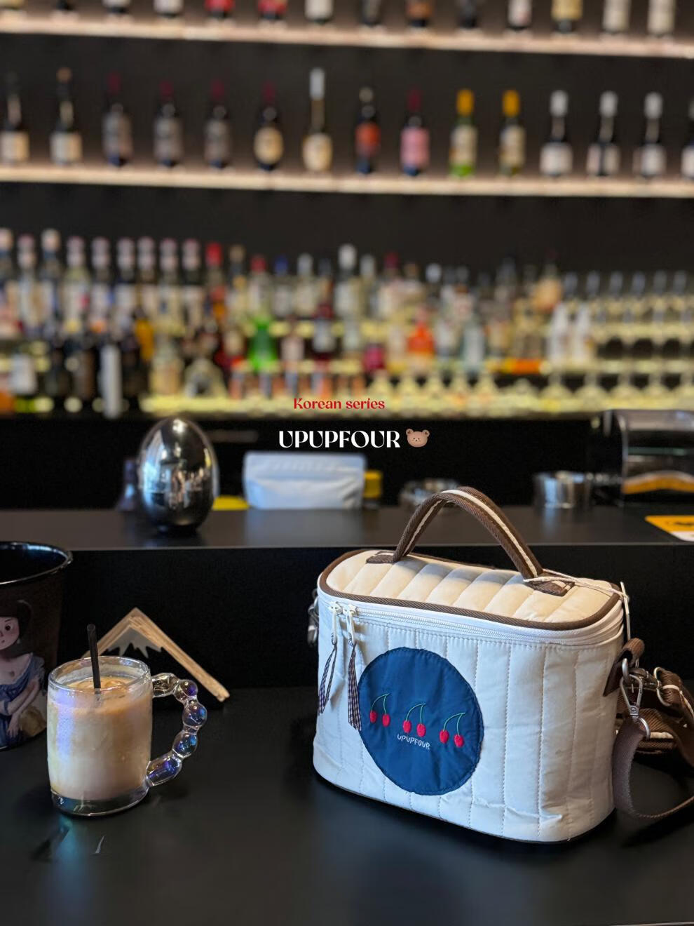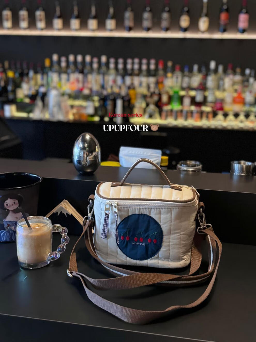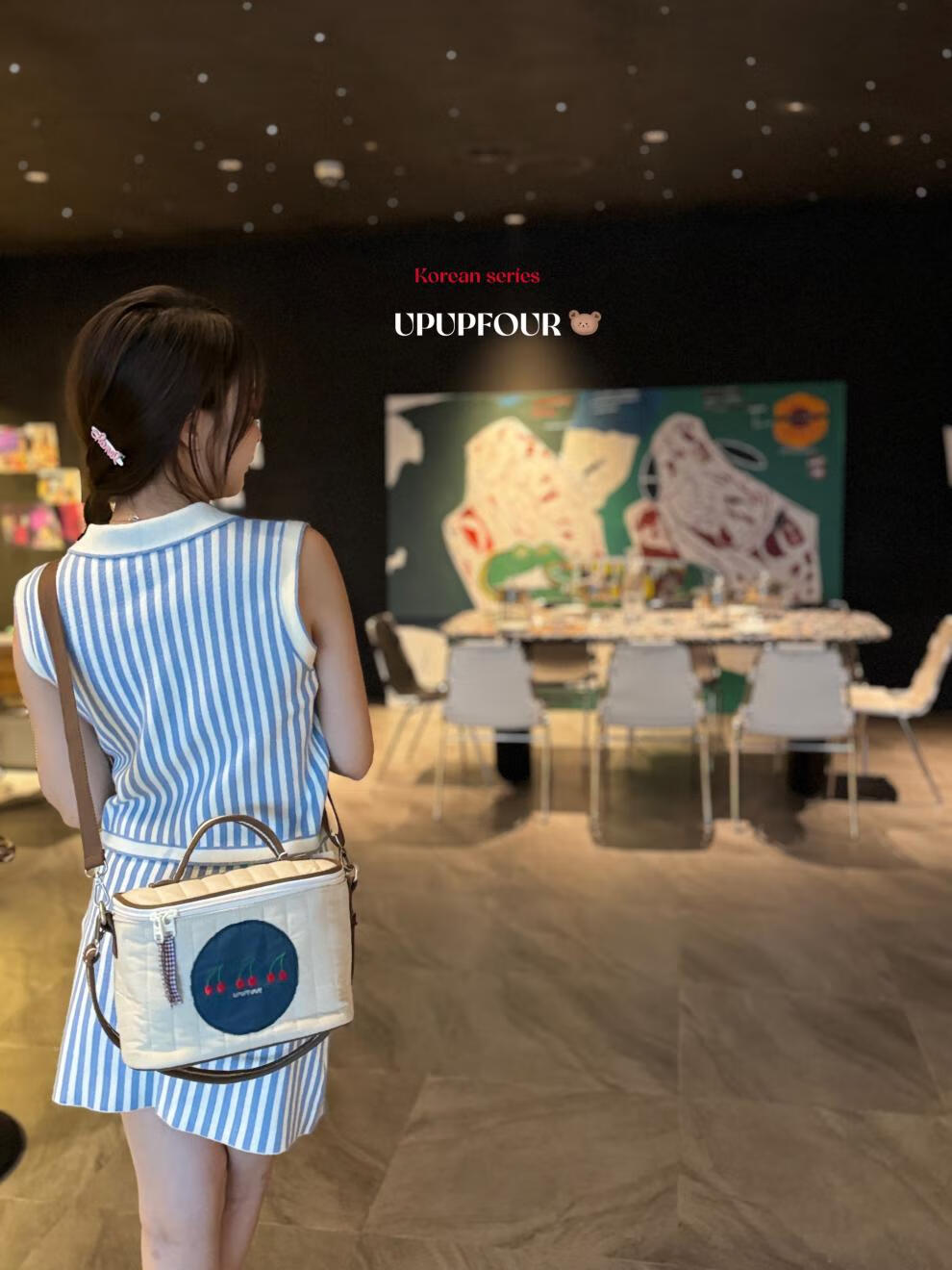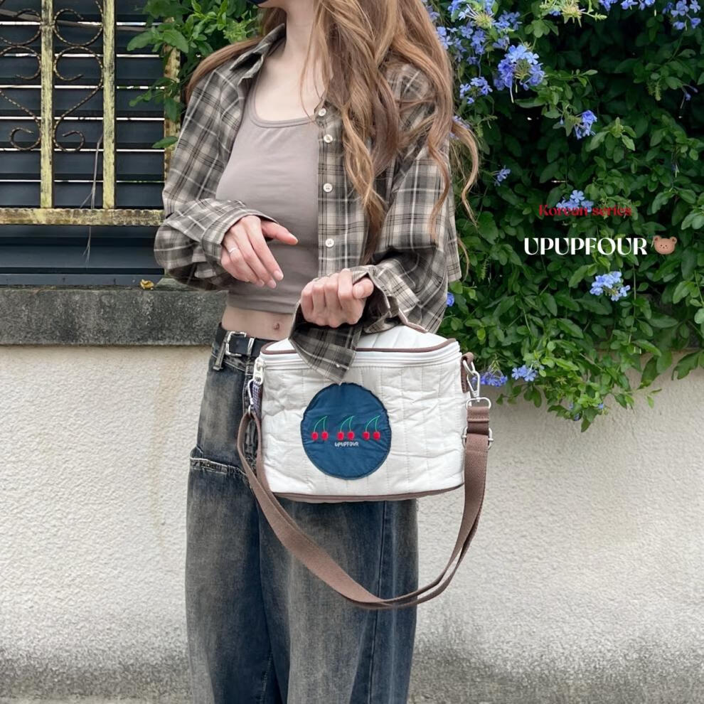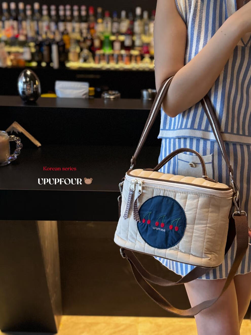 Jiabaixing upupfour Umhängetasche, Hand-Kinderwagen-Aufbewahrungstasche, Kinderwagen-Tasche, hängende Lunch-Tasche, Picknick-Tasche, Mama-Tasche, Kirsch-Retro-Tasche, zwei Arten von Schultergurten (koreanischer Stoff)