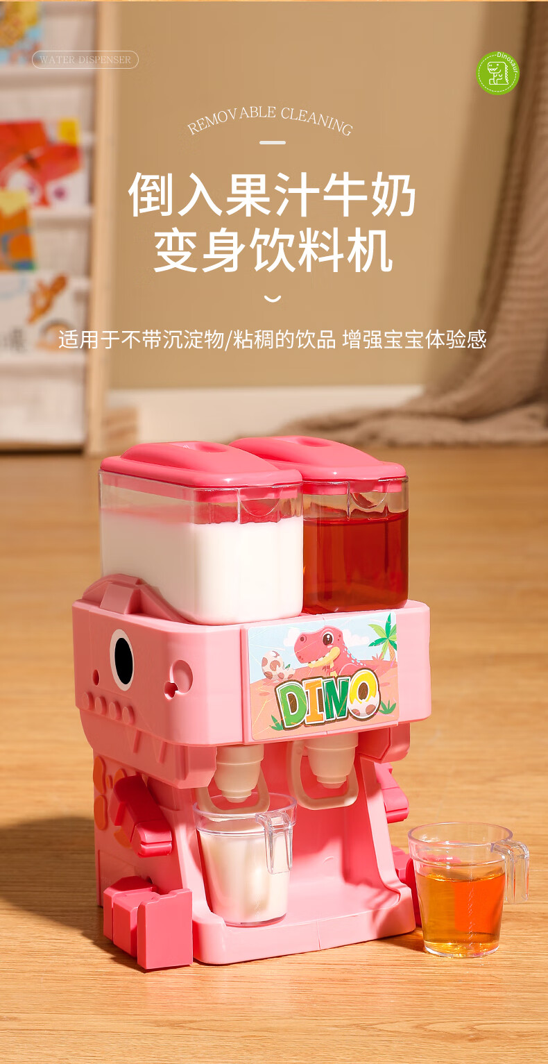 可爱家儿童迷你饮水机玩具过家家小型恐龙饮料机女童网红2024新出女孩子 仿真出水【粉色】恐龙饮水机(配6