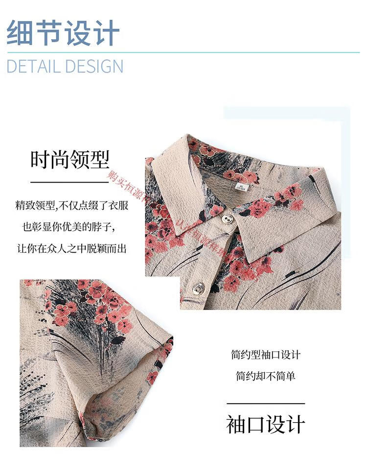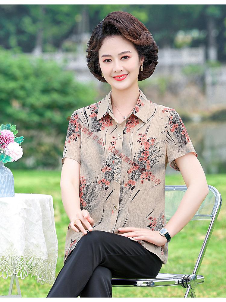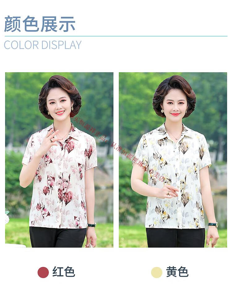 恒源祥妈妈夏装真丝短袖衬衫女洋气花色桑蚕丝T恤中老年宽松上衣 6623红色 XL 建议90-100斤