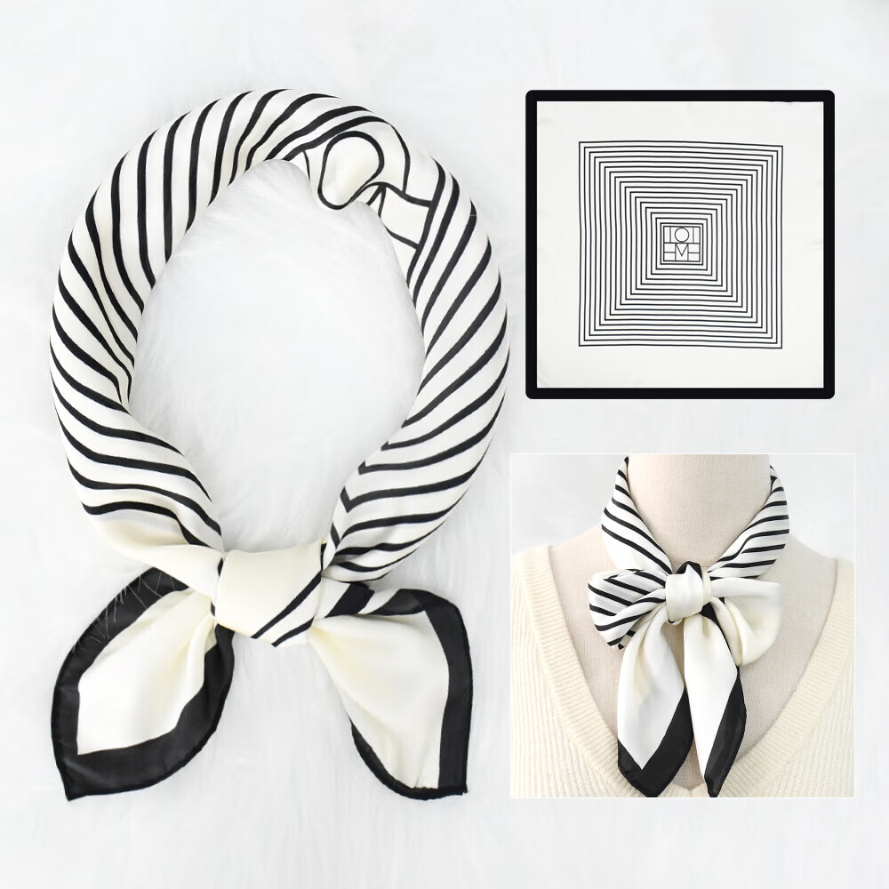 上海故事时尚方巾女夏季百搭母亲生日礼物条纹字母70CM仿真丝丝巾 白色帆船 70*70CM