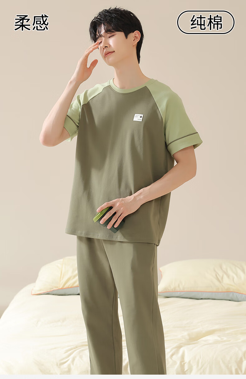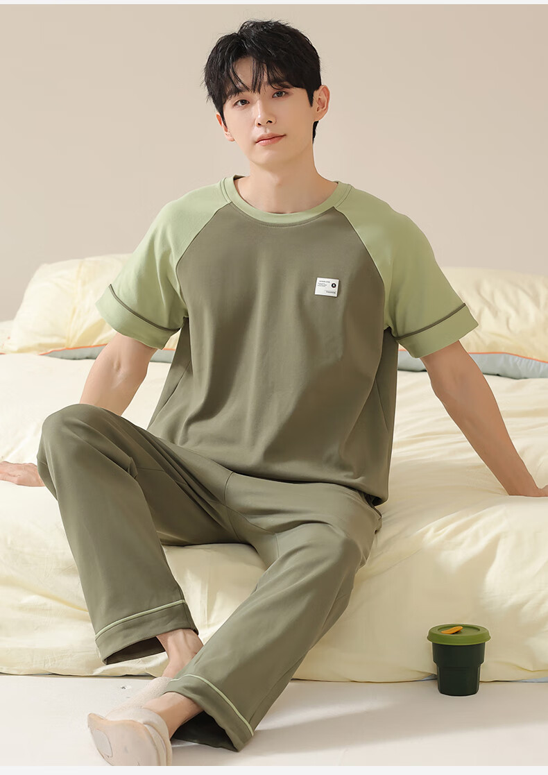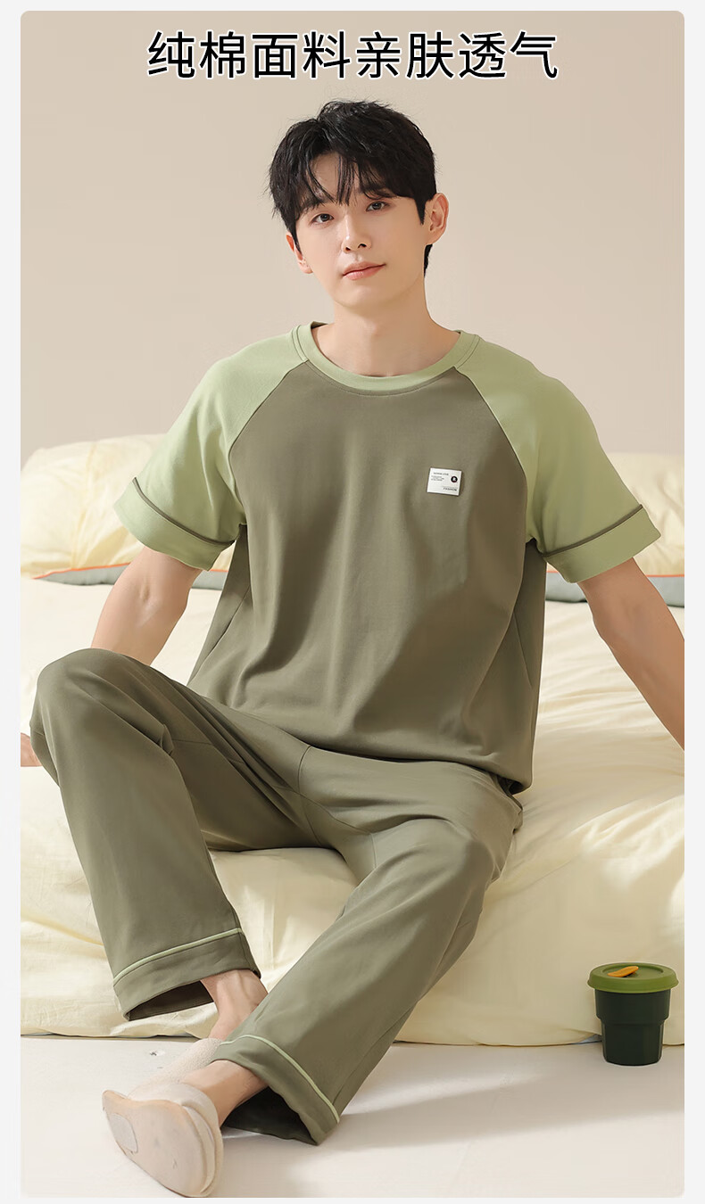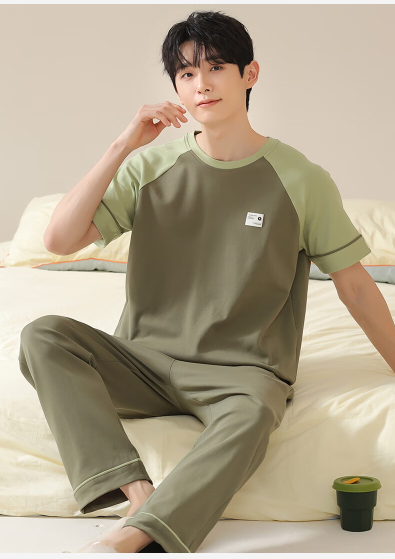 焦男男士睡衣纯棉夏季拼接色潮流简约轻奢可外穿家居服短袖长裤两件套 01N13601男 XL