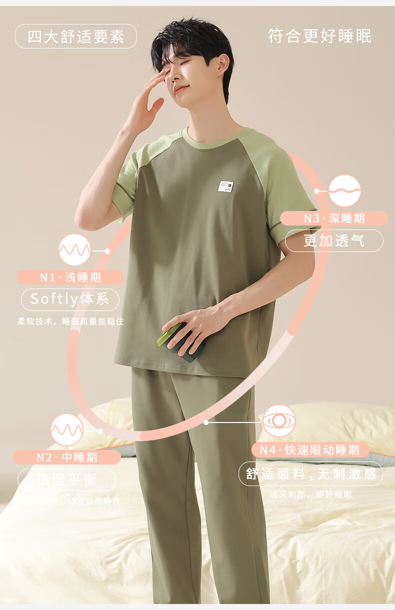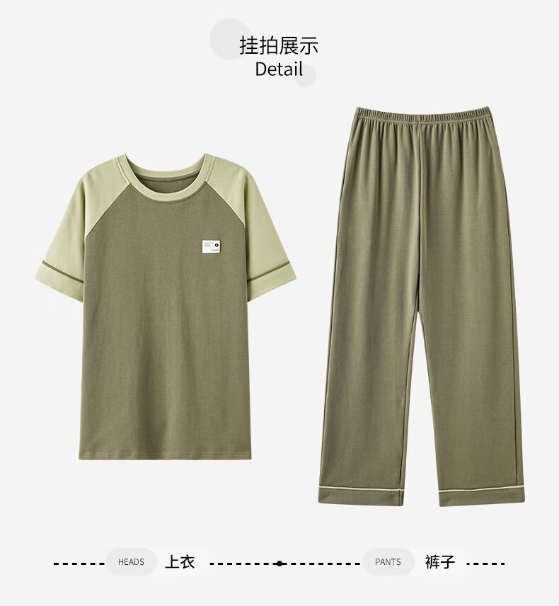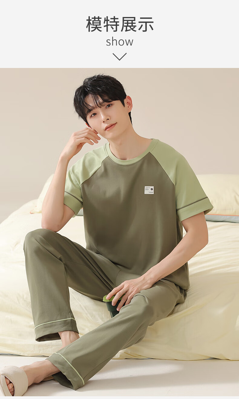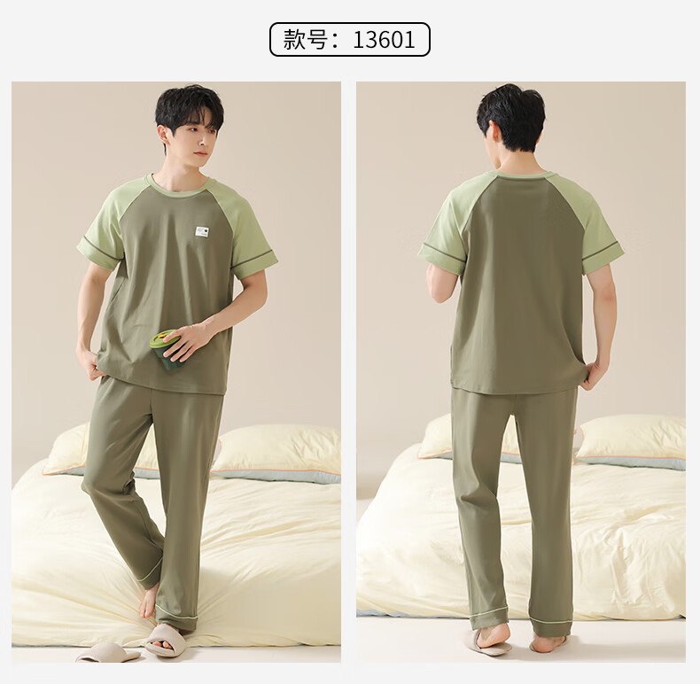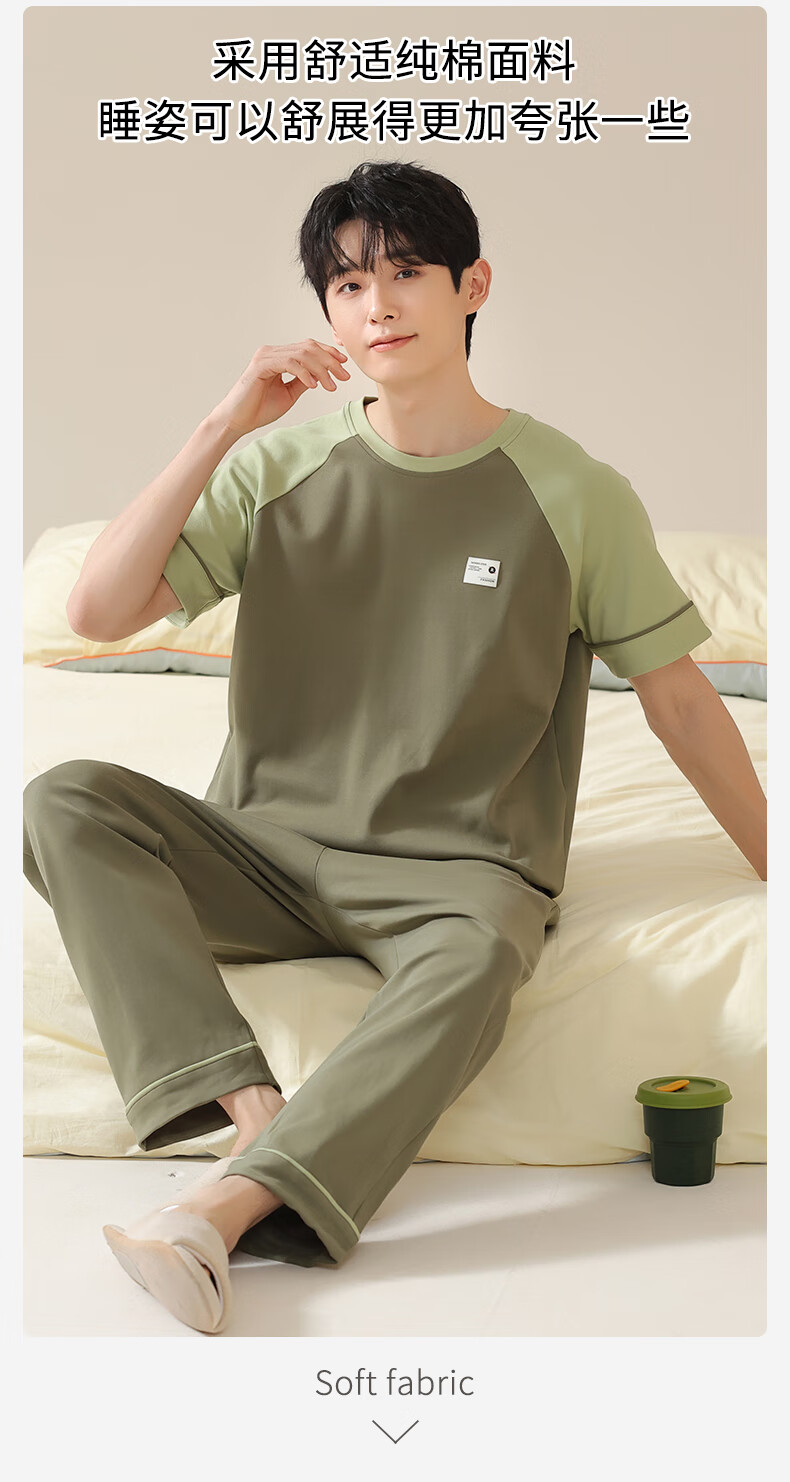 焦男男士睡衣纯棉夏季拼接色潮流简约轻奢可外穿家居服短袖长裤两件套 01N13601男 XL