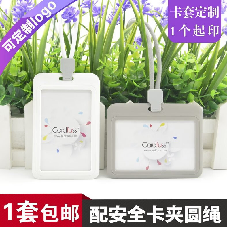 虎罗罗时尚圆绳挂绳吊牌员工牌公交卡工作牌工作证校园卡套卡带学生公交 C5白色横版+9734白色圆绳