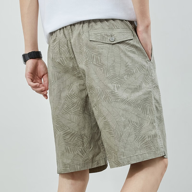 皮尔卡丹(pierre cardin)2025夏季男士休闲短裤纯棉运动休闲裤沙滩五分男直筒裤子 豆绿色9215 L 建议120-140斤