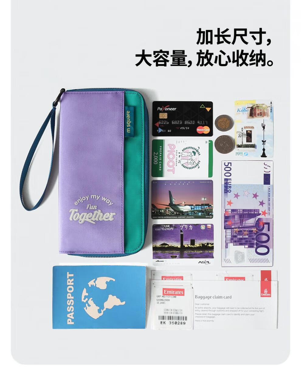 M square new product passport bag, ticket holder, document bag, overseas travel storage bag, portable multi-function bag, sand dune yellow