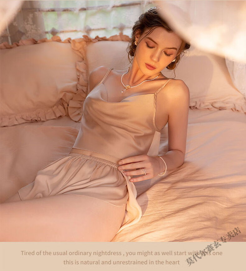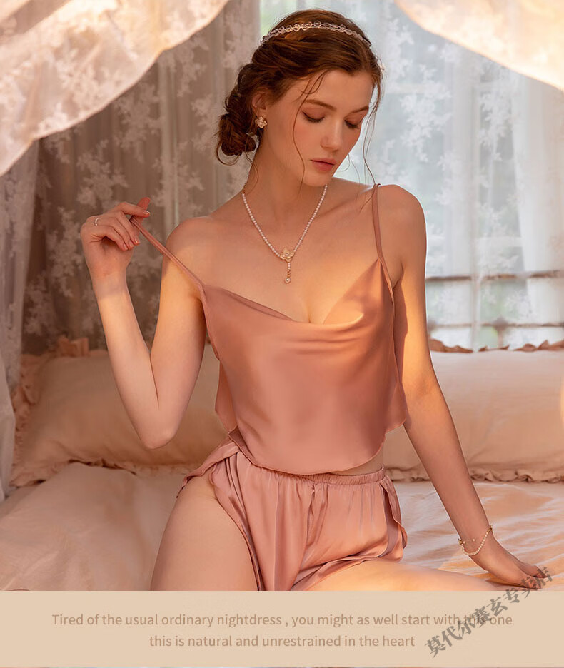 莫代尔性感睡衣女春夏季冰丝两件套装背心吊带短裤纯欲风家居服2025新款 6630三件装-酒红色 M