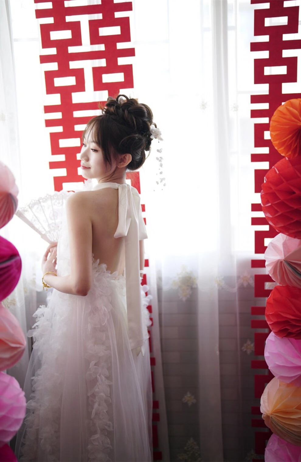 现宝莲法式新娘结婚晨袍睡裙白色轻婚纱礼服伴娘网纱连衣裙露背仙女长裙 白色 XL