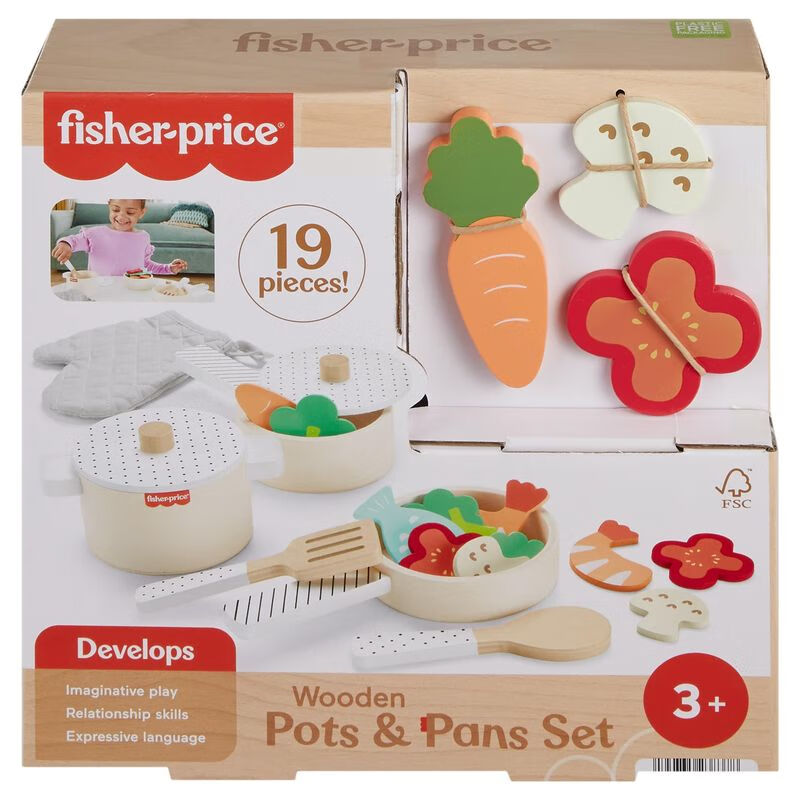 Fisher-Price children's kitchen role play wooden toys 19-piece set cooking game early education puzzle HXT83 US direct mail creative gift