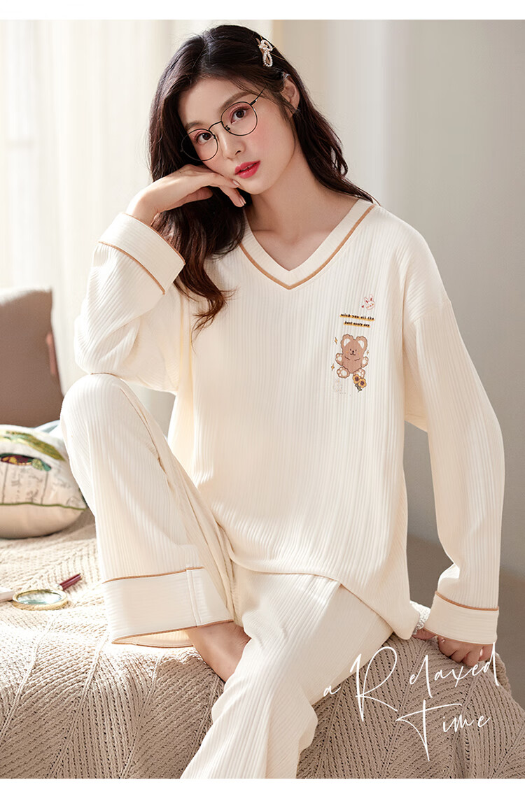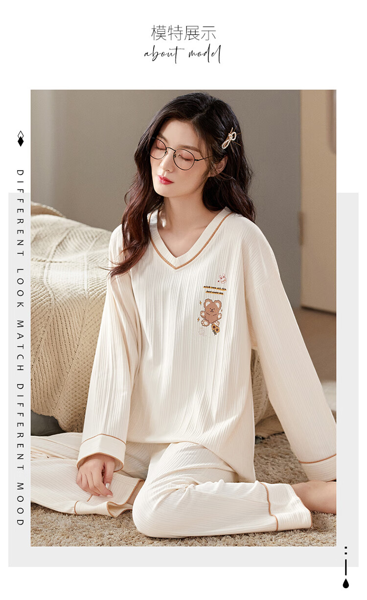 Modal pajamas for women spring and autumn new style comfortable large size long-sleeved two-piece suit casual spring and summer home wear can be worn outside GXT9928 M (recommended 75-95Jin Jin equals 0.5 kg)