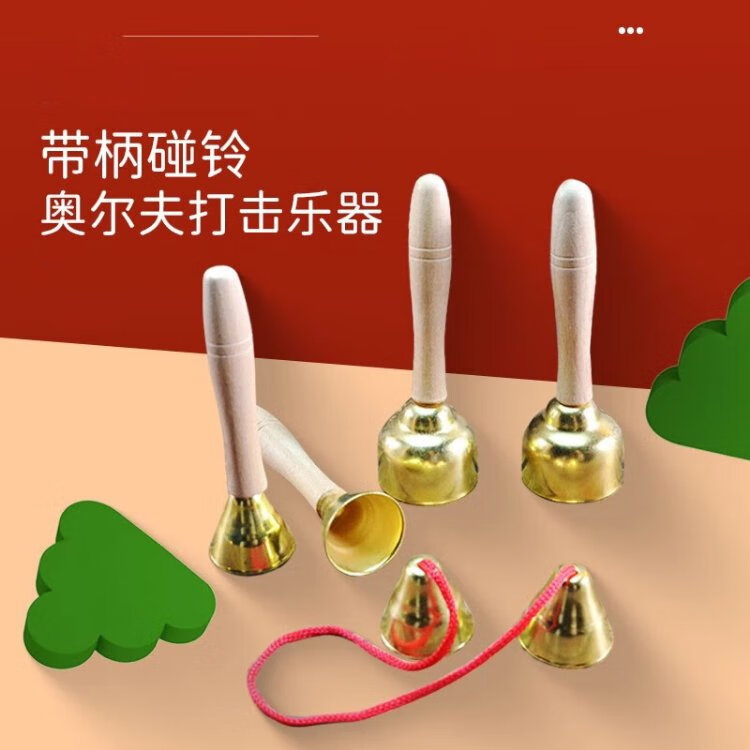 梦动奥尔夫打击乐器碰铃碰钟幼儿园音乐教具教学撞钟撞铃镀铜儿童乐器 【红绳碰钟一对】