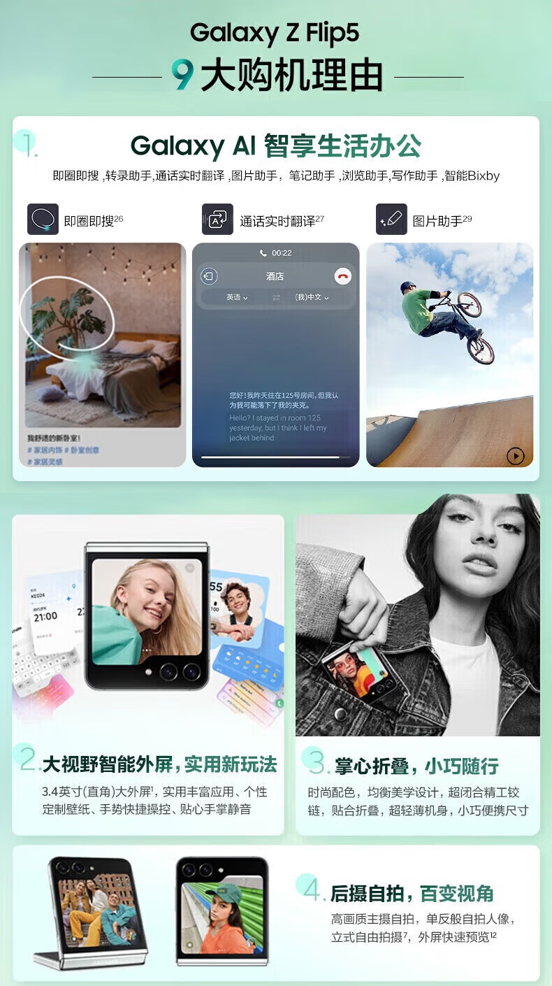 Samsung Galaxy Z Flip5 Flip4 Flip3 Klappbildschirm-Handy Gebrauchtes Klapphandy Gebrauchtes Samsung-Handy Samsung Flip3 Meteor Coast Store Manager's Selection-Battery High Appearance New 99 New 8+128G