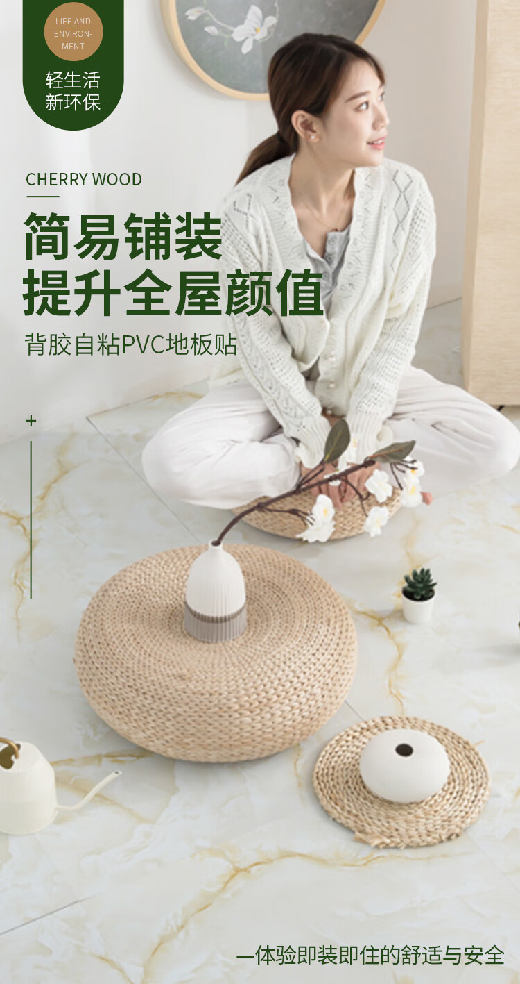 高光自粘PVC地板贴地板革加厚地板贴自粘耐磨防滑自粘地板胶批发 爵士白(6625)/1片 亮面升级防烟渍1片 1.2mm