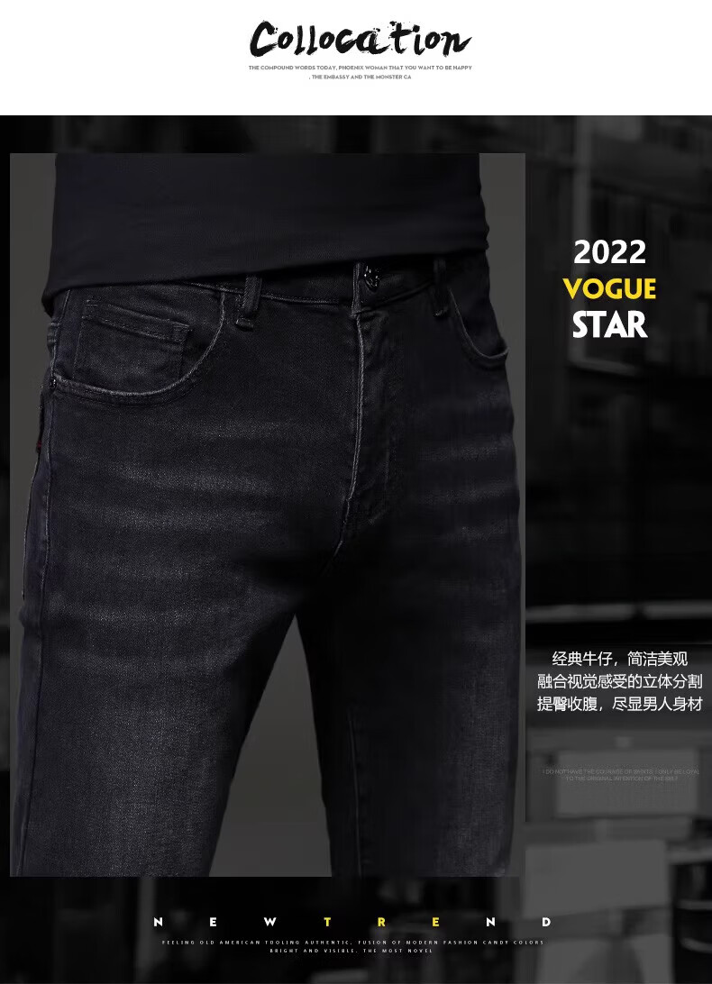 TOME BORNEK high-end brand black jeans men's 2025 summer new Korean version trendy retro small feet stretch pants men 1049 gray 29 two feet two