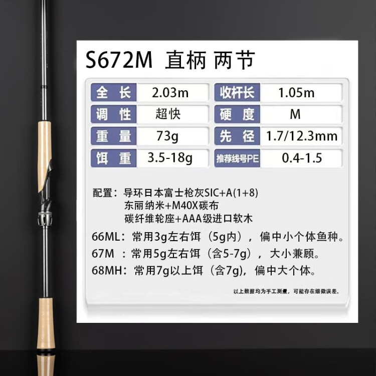新款不鳜路亚马槊竞技版超快调虫竿鳜鱼竿黑坑鲈鱼超快翘嘴路亚竿 2.04米 直柄S682MH