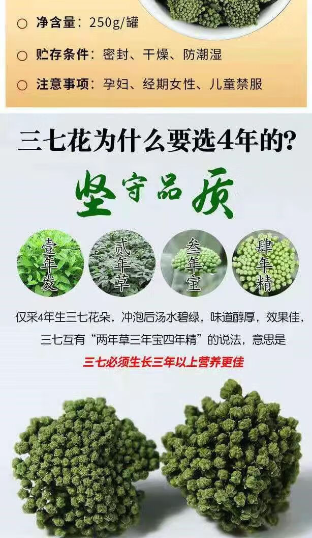 亚多琳三七花正品正宗云南文山非野生特级新四年干三七花田七花茶新包邮 250克瓶装半斤