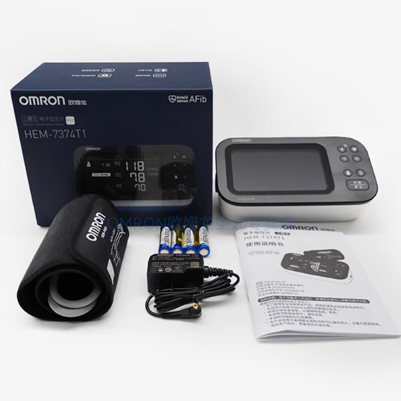 欧姆龙(OMRON)电子血压计HEM7374T1血压测量仪家用血压计房颤血压同时测 HEM-7374T1新款原装电源+原装臂带+电池