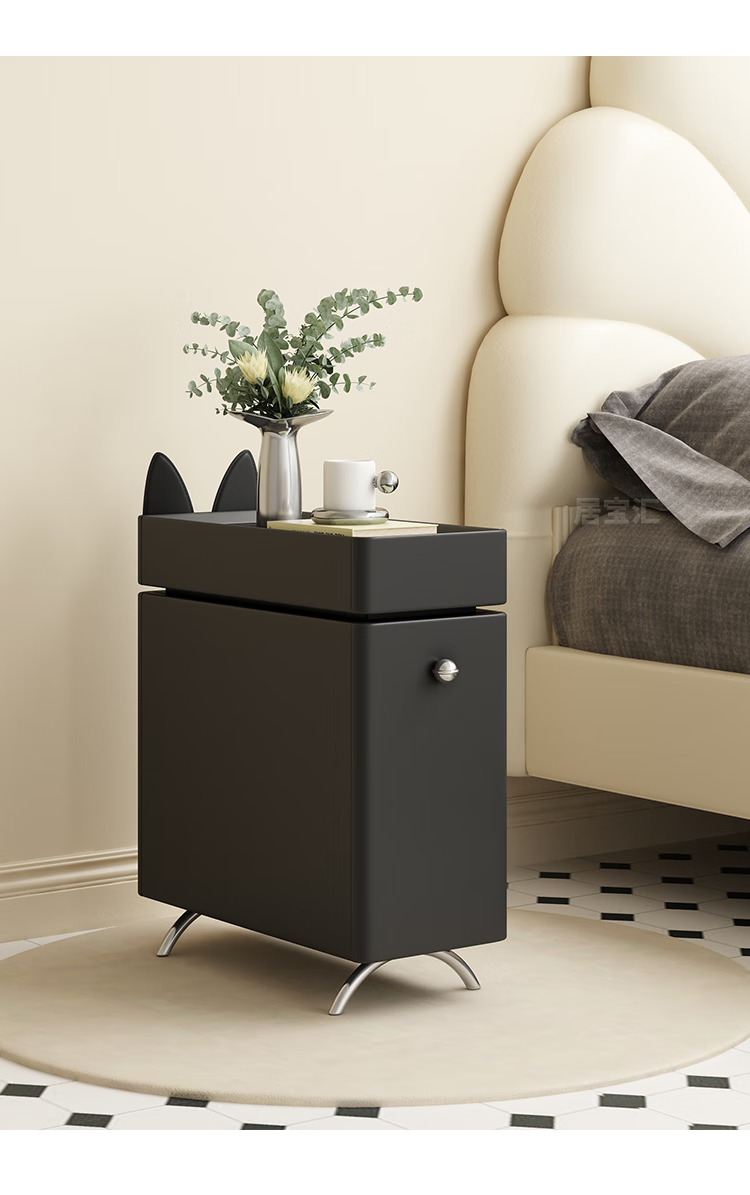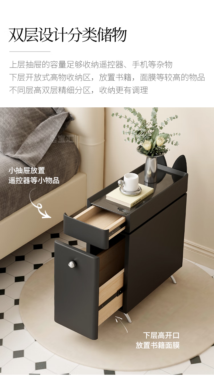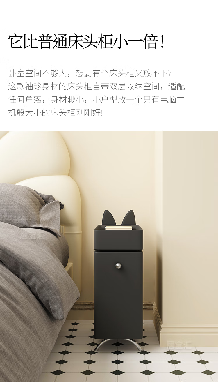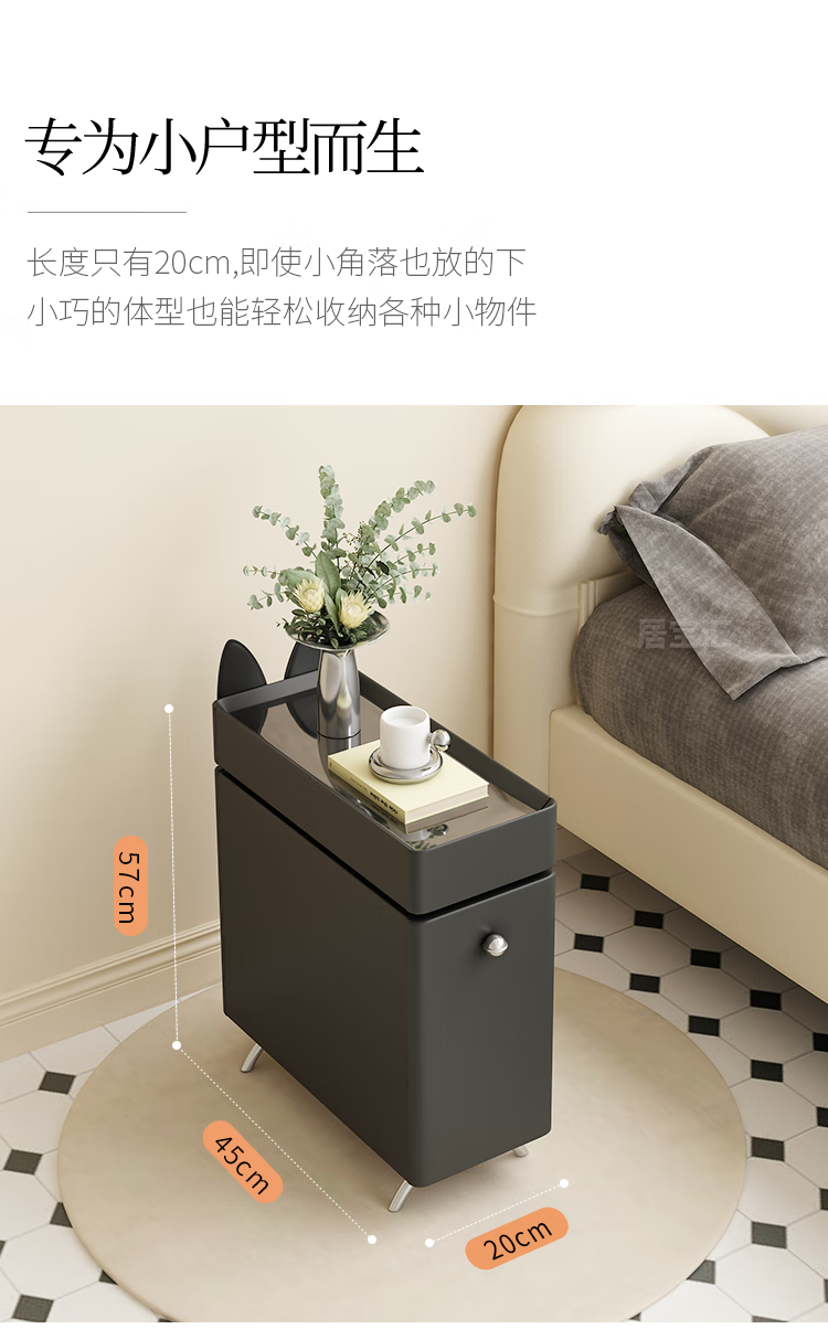 Hengque extremely narrow bedside table creative simple wall gap cute compact new style personalized cartoon black bedside table 684 solid wood 20*45cm-double layer-off-white fully equipped (no installation required, ready to use out of the box)