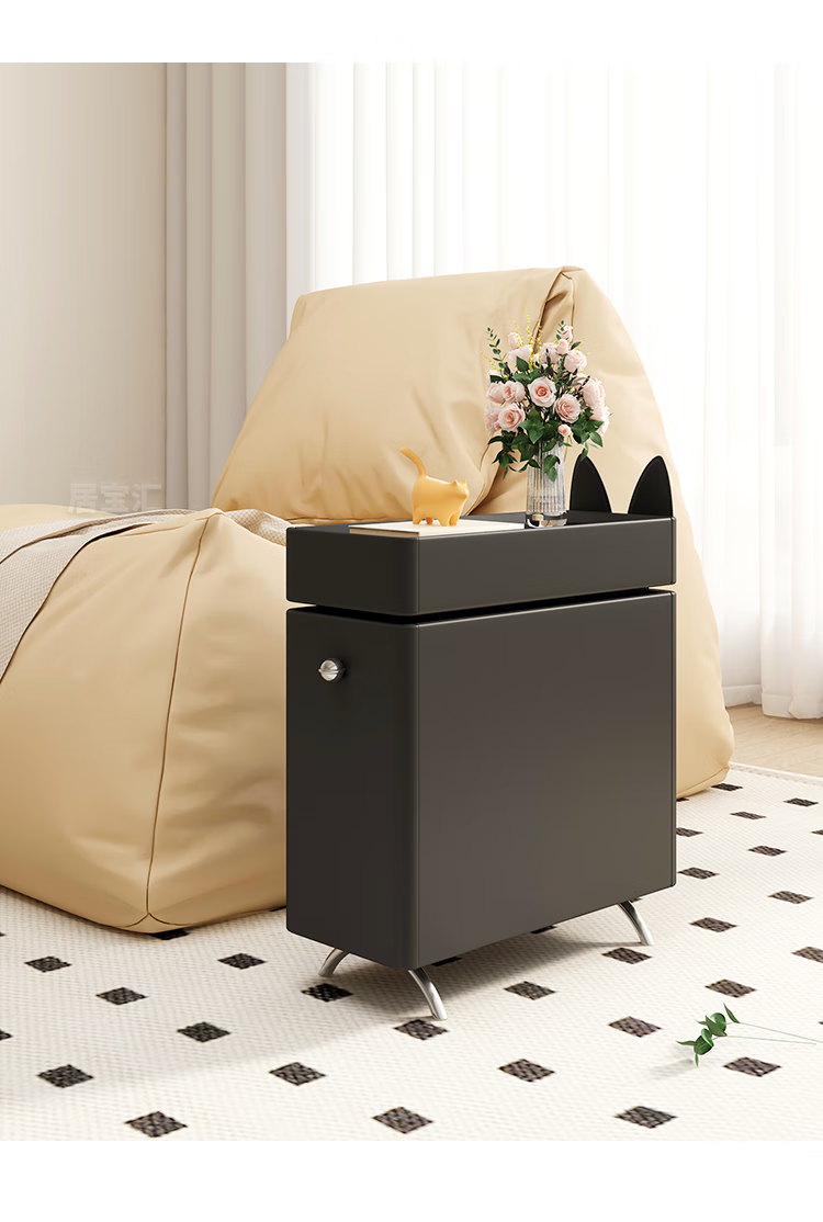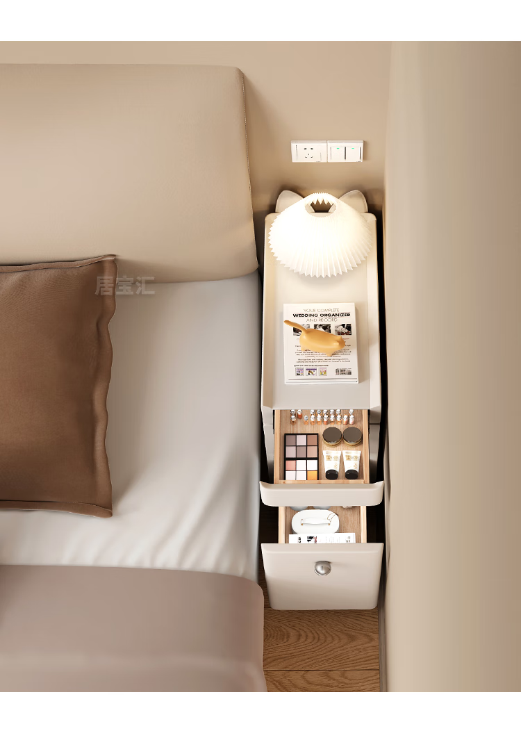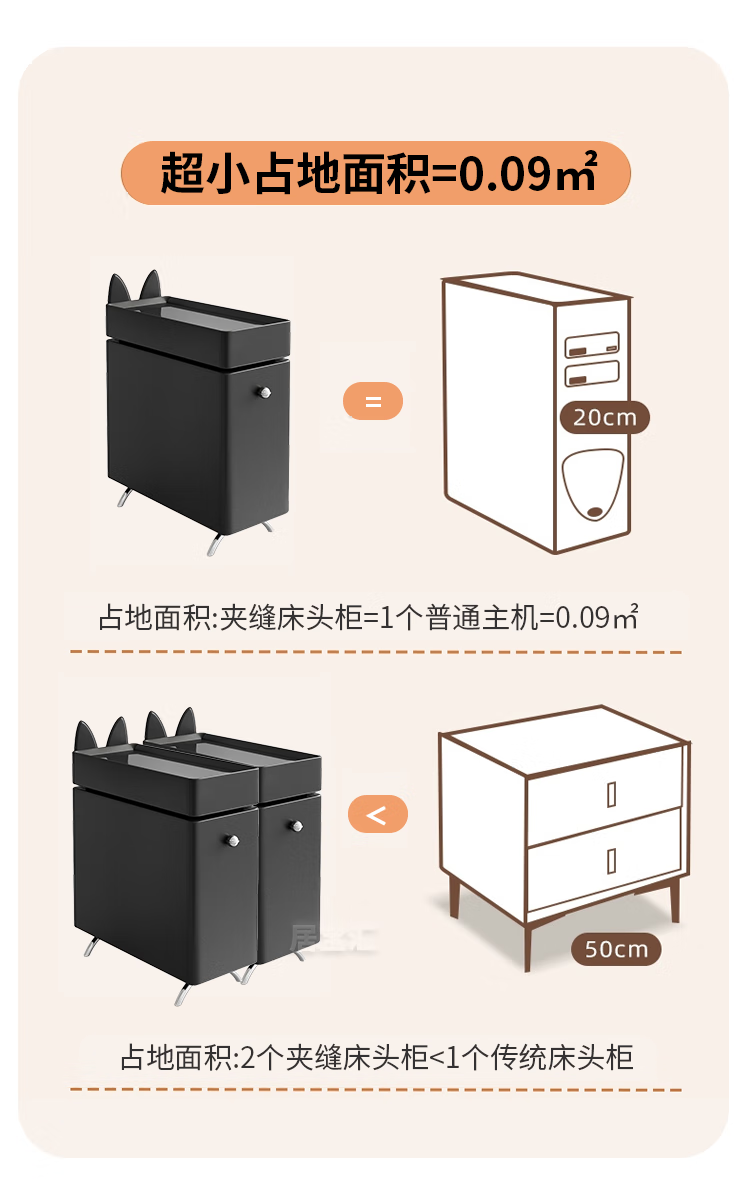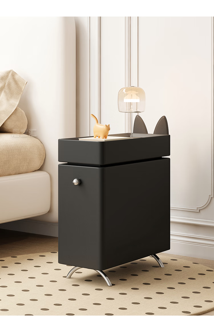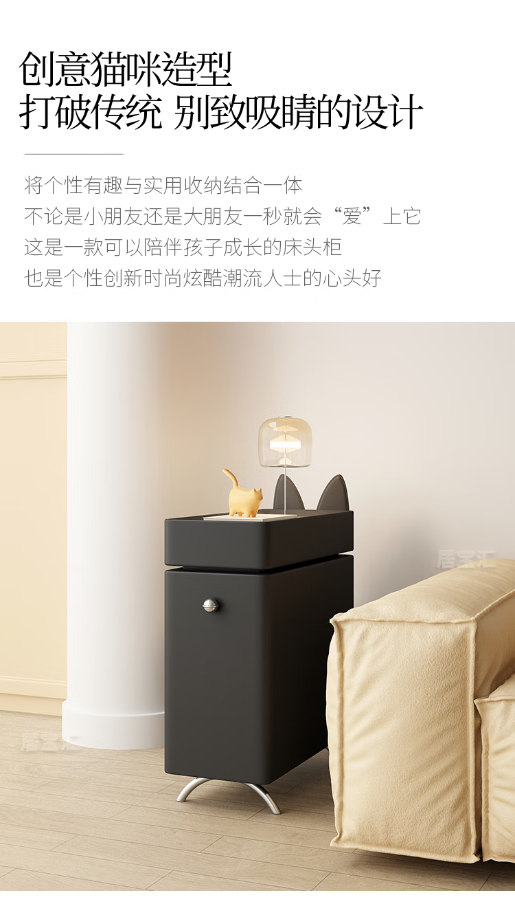Hengque extremely narrow bedside table creative simple wall gap cute compact new style personalized cartoon black bedside table 684 solid wood 20*45cm-double layer-off-white fully equipped (no installation required, ready to use out of the box)