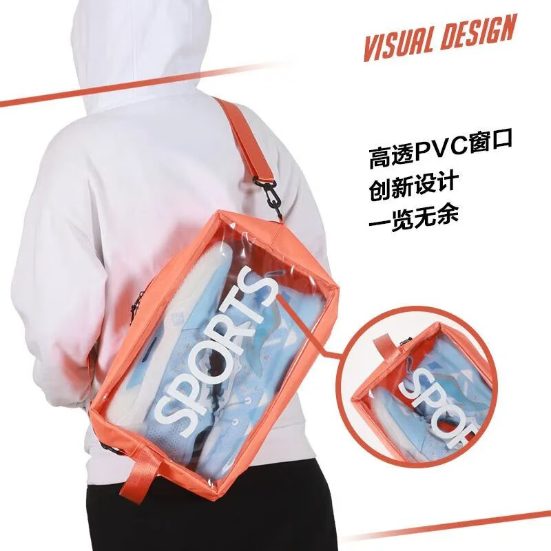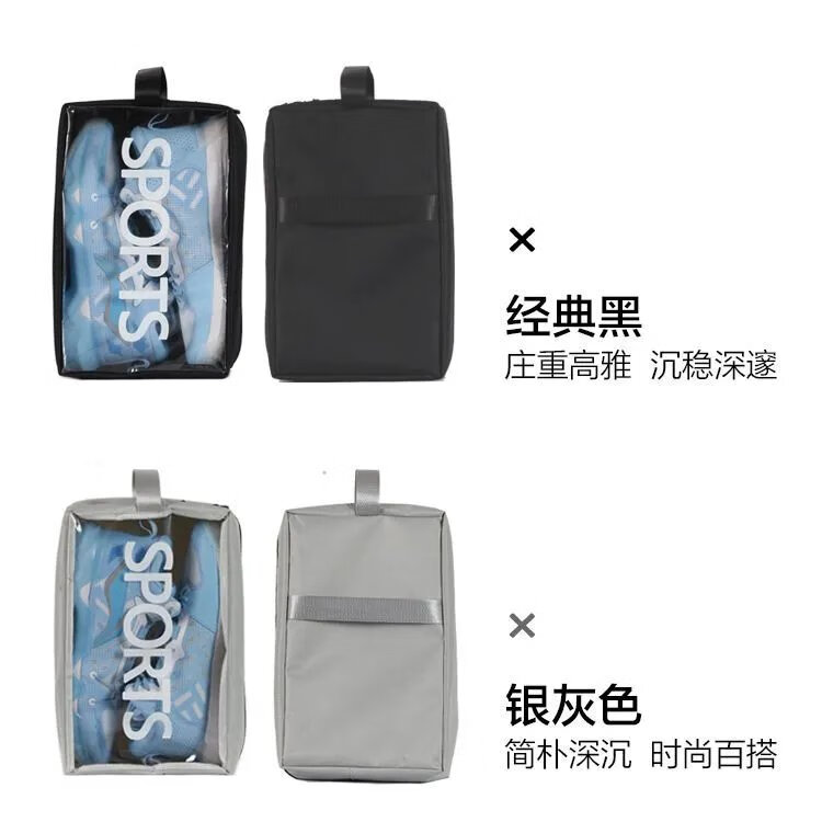 【新品】球鞋收纳包手提篮球鞋包运动健身便携足球鞋盒旅行透明包 经典黑手