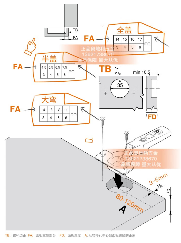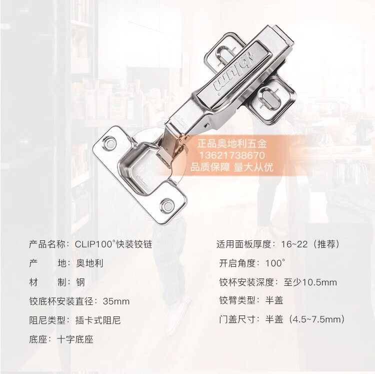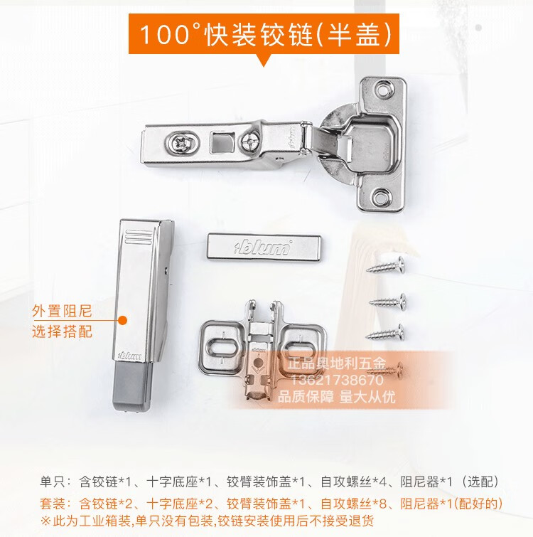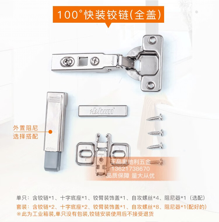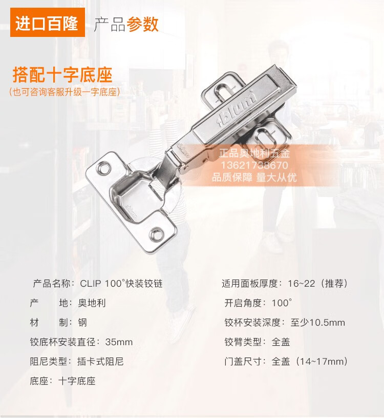 BLUM Austria Blum hinge built-in damping buffer door hinge wardrobe split door hinge integrated hinge hardware 14107 integrated damping without decorative cover half cover = middle curve