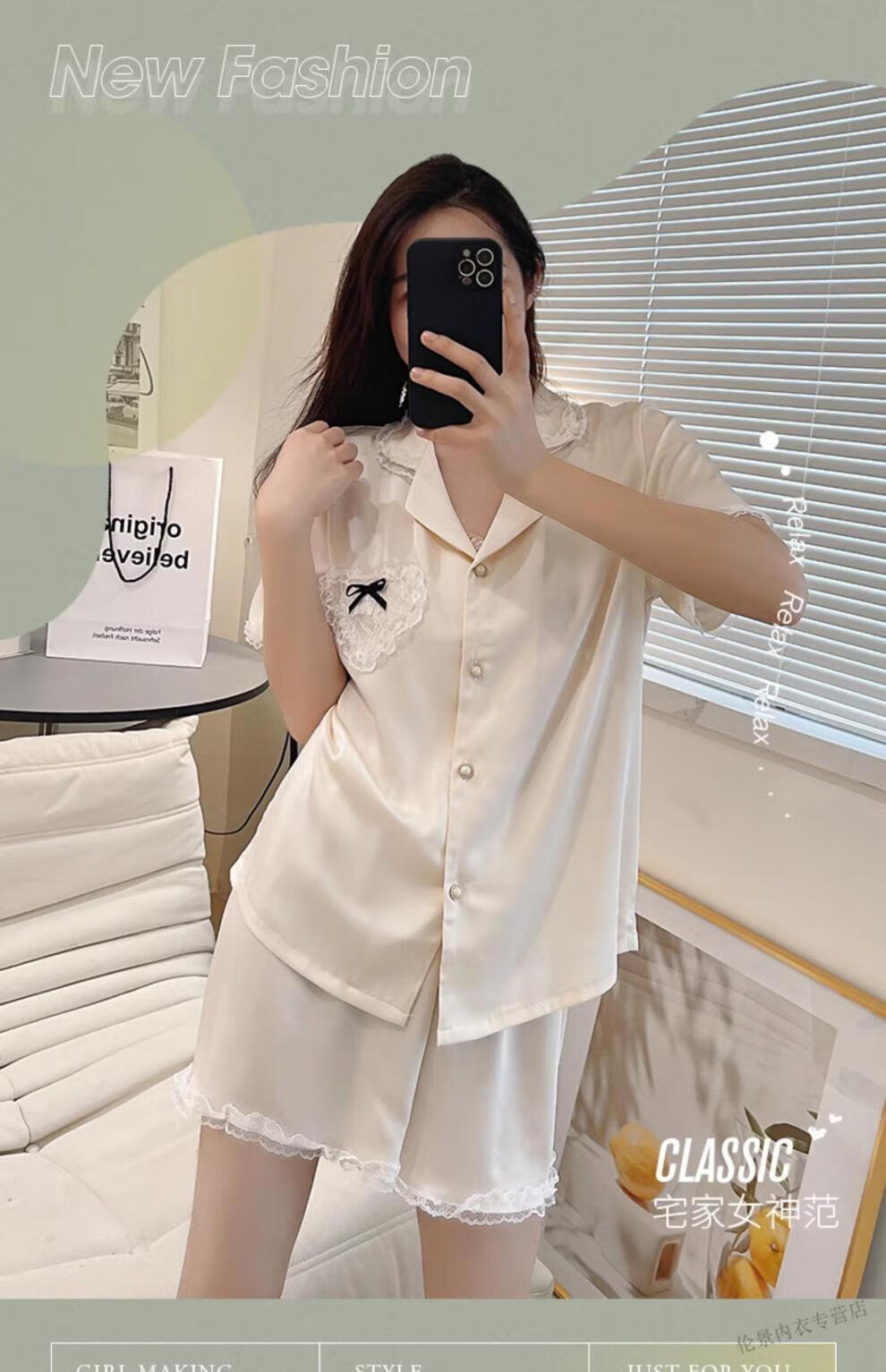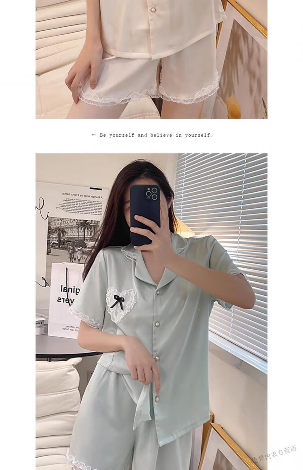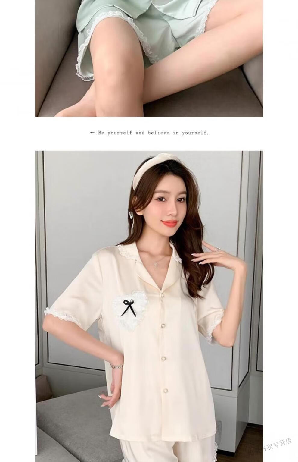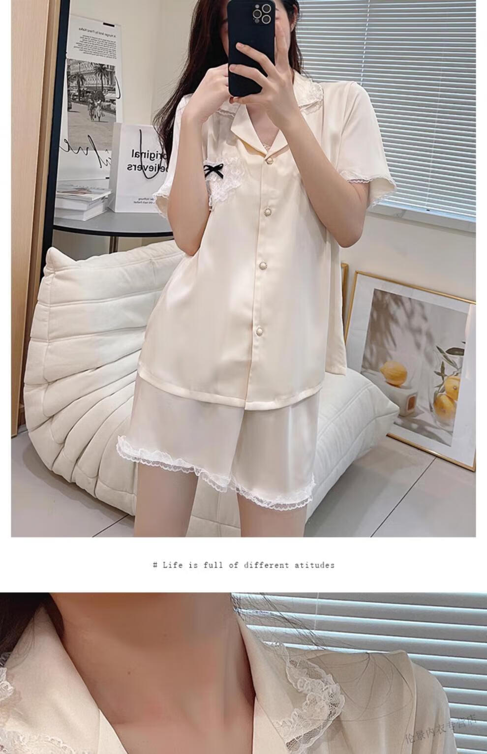 Victoria's Secret Pajamas Women's Princess Style Summer Ice Silk Short Sleeve Shorts Home Clothes Suit Lace 2025 New YX9214 M Female Recommended Weight 80-105Jin Jin is equal to 0.5 kg