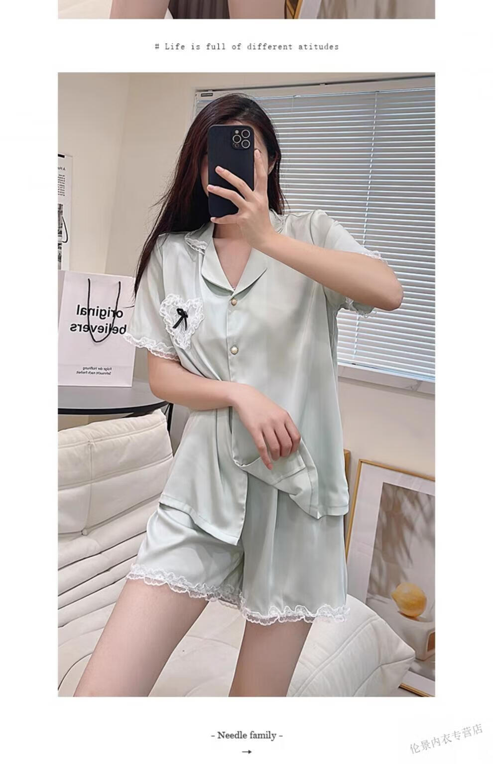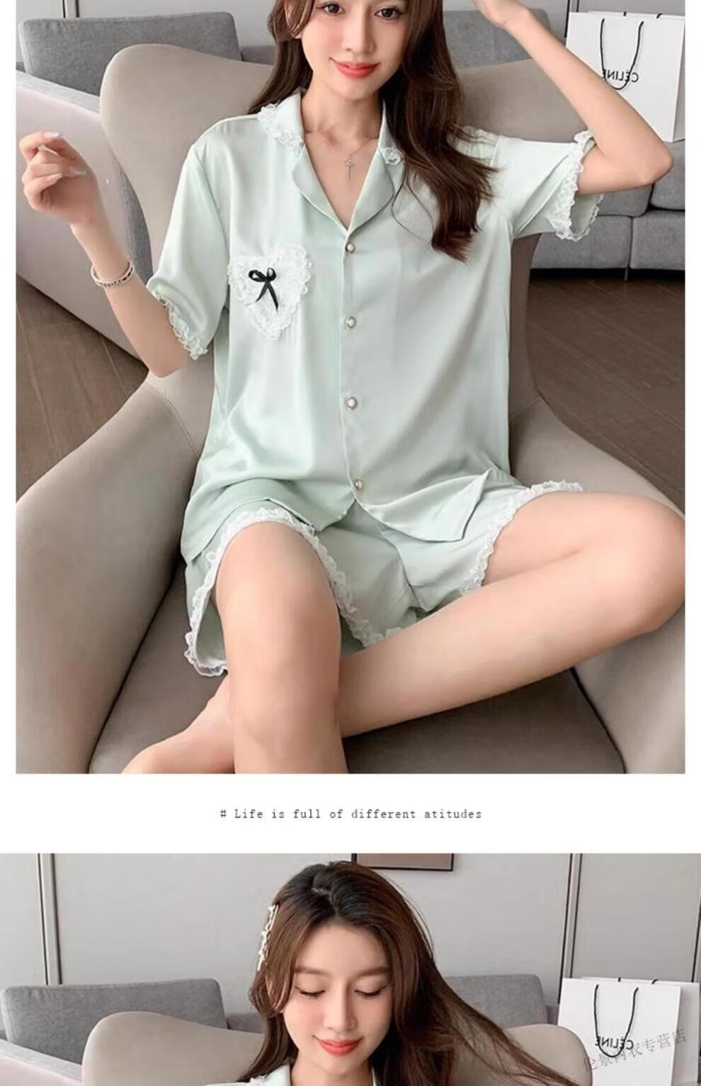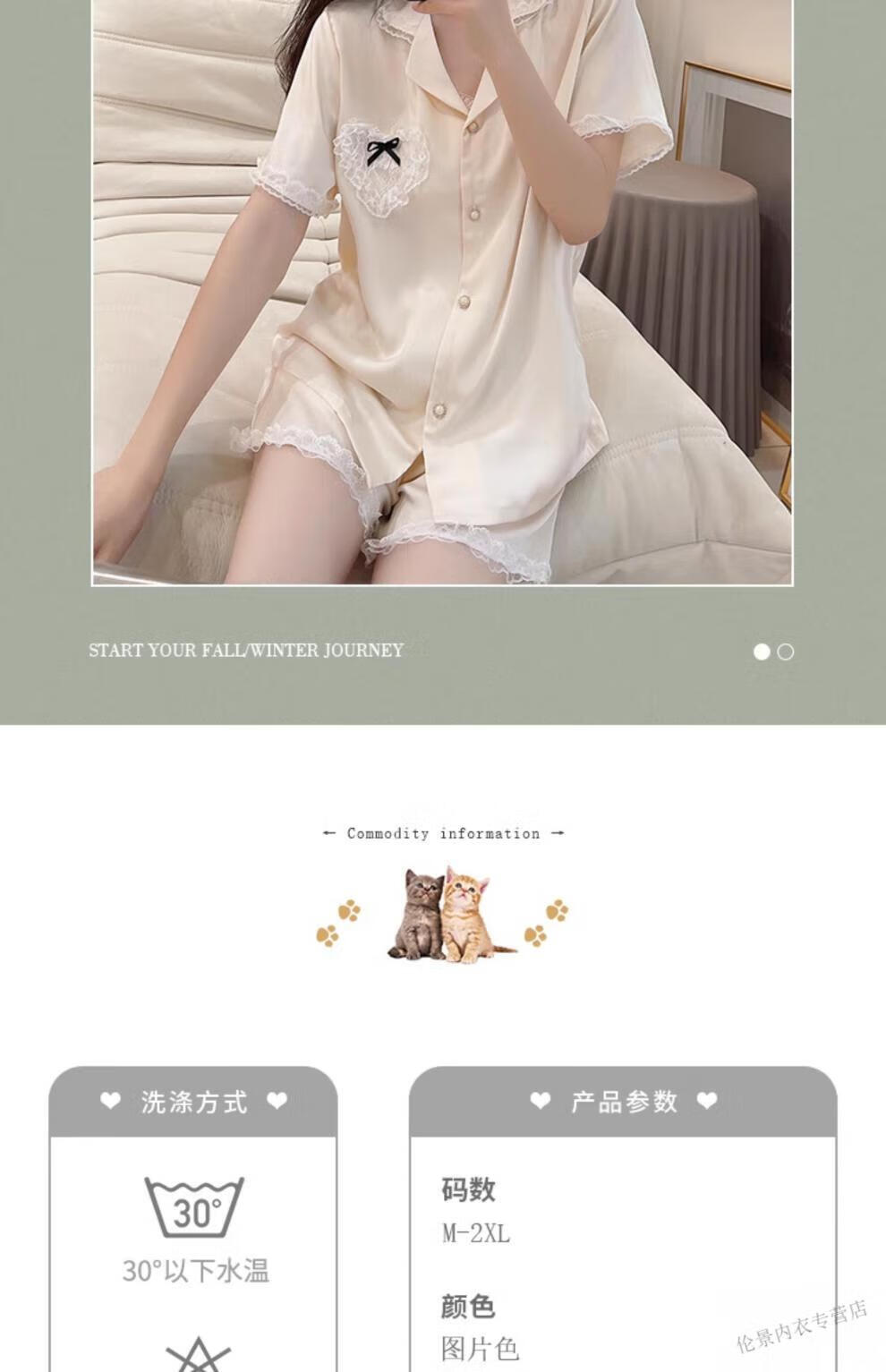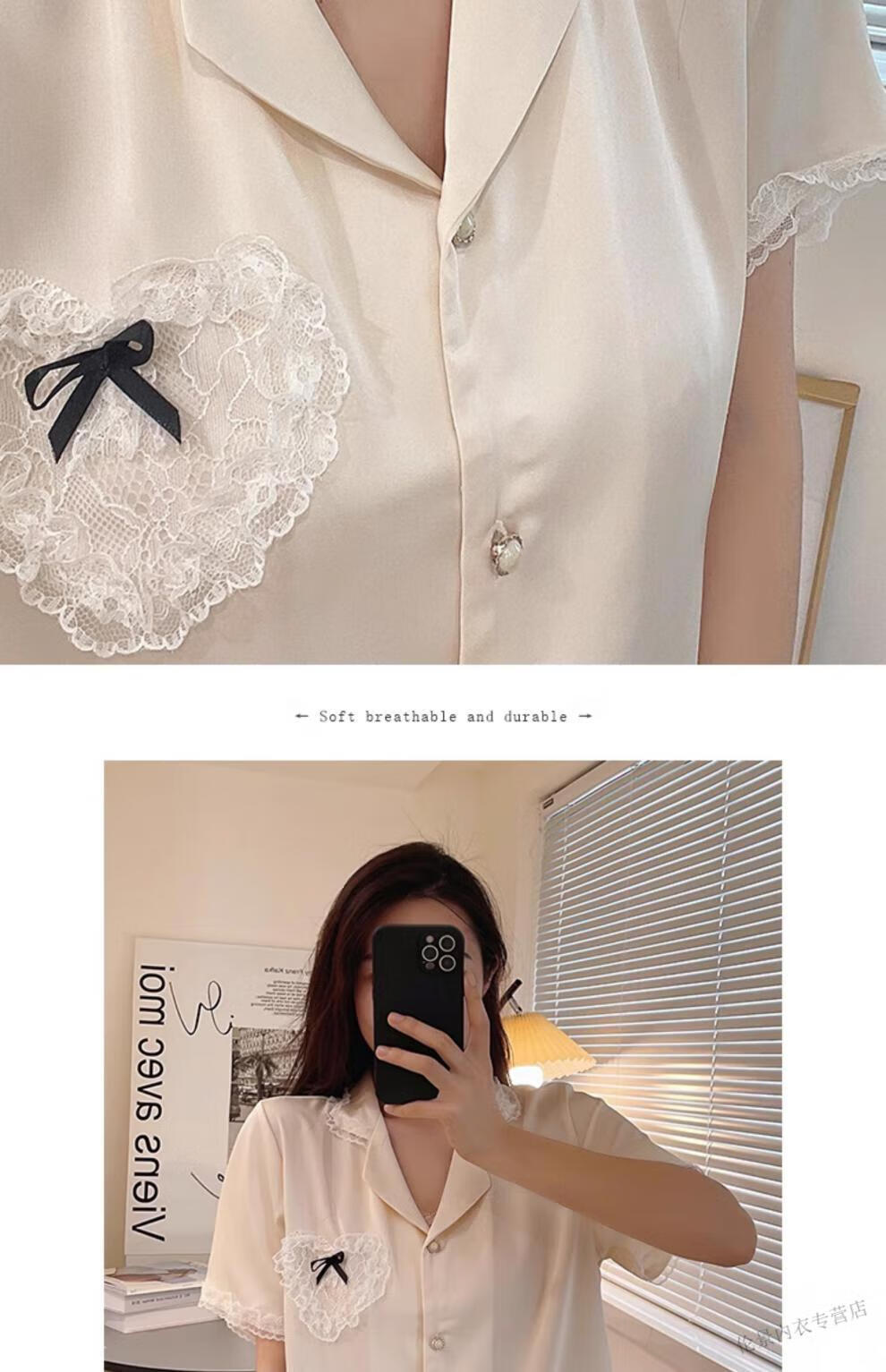 Victoria's Secret Pajamas Women's Princess Style Summer Ice Silk Short Sleeve Shorts Home Clothes Suit Lace 2025 New YX9214 M Female Recommended Weight 80-105Jin Jin is equal to 0.5 kg