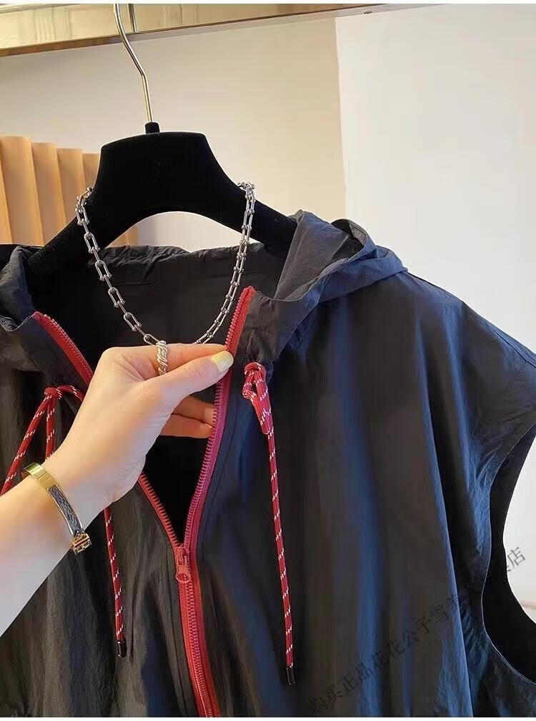 Playboy (PLAYBOY) extra large size 300Jin Jin is equal to 0.5kg hooded vest sleeveless spring and summer outdoor light and versatile loose casual quick-drying sun protection jacket 1105 Khaki L