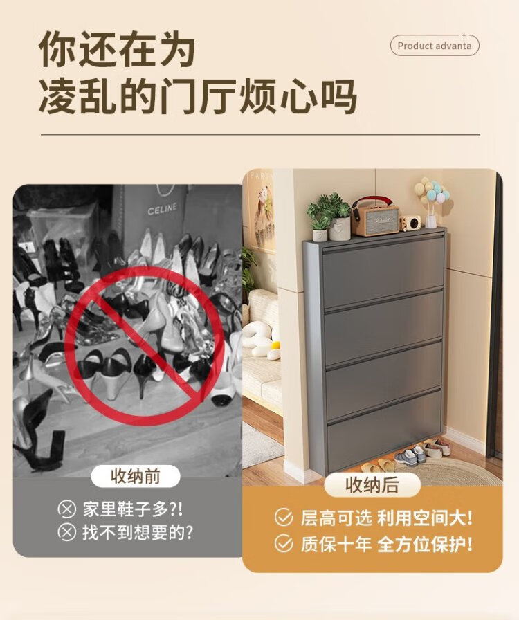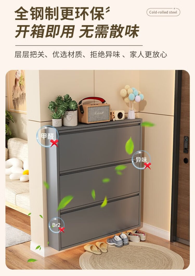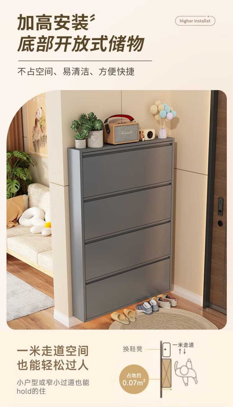 Zhaojian Zapatero ultrafino Puerta de Acero para el hogar Gabinete de Entrada Entrada Todo en uno Gabinete de Almacenamiento de Zapatos de Pared Pasillo Almacenamiento Zapatero Segundo Piso Longitud 655 Ancho 102 Alto 700 - Gris