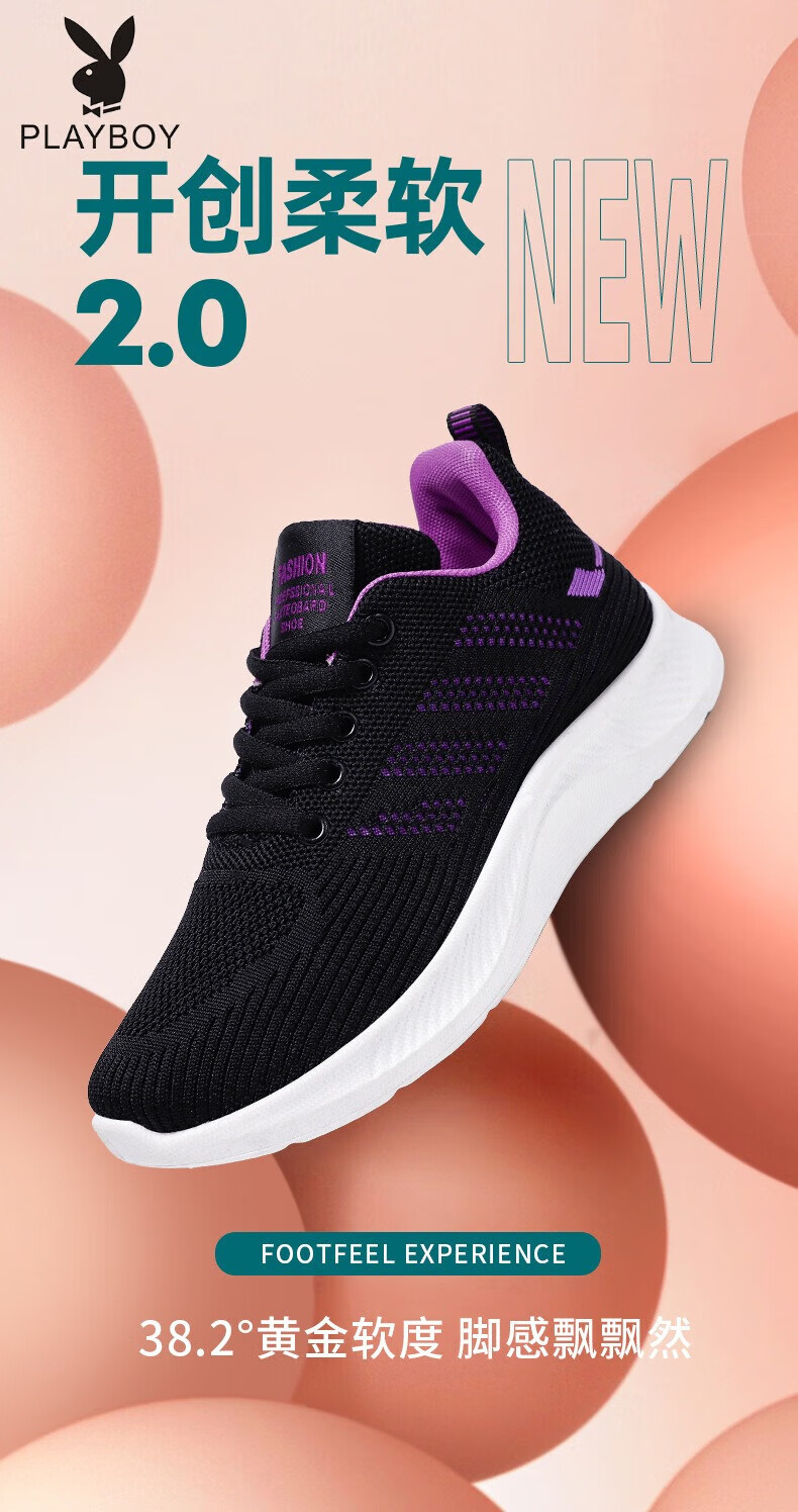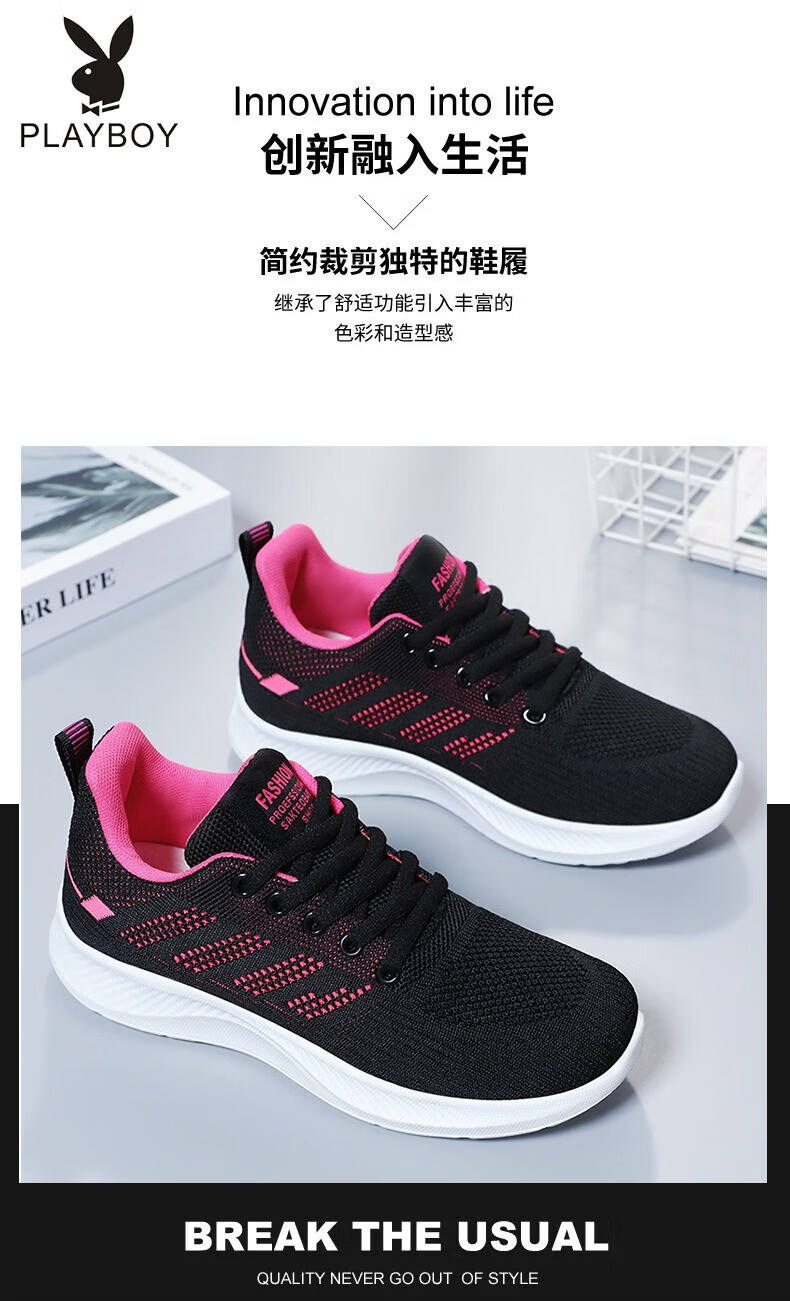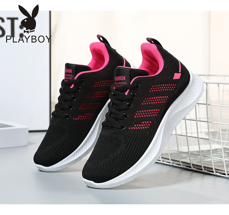 Playboy (PLAYBOY PHYSICAL) nouvelles chaussures de sport en maille pour femmes, chaussures à semelle souple décontractées et respirantes pour la marche G-H831 rouge prune 39