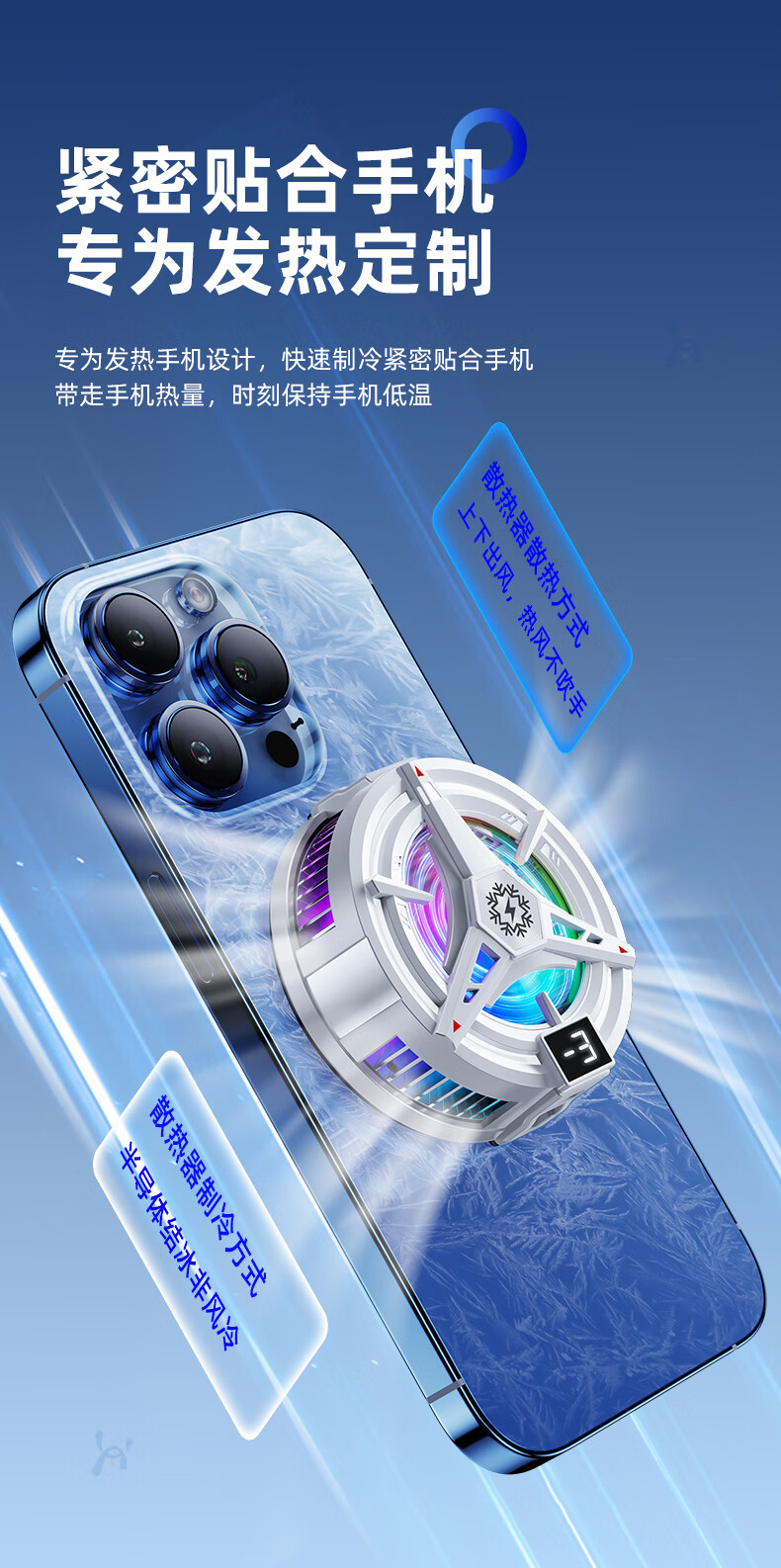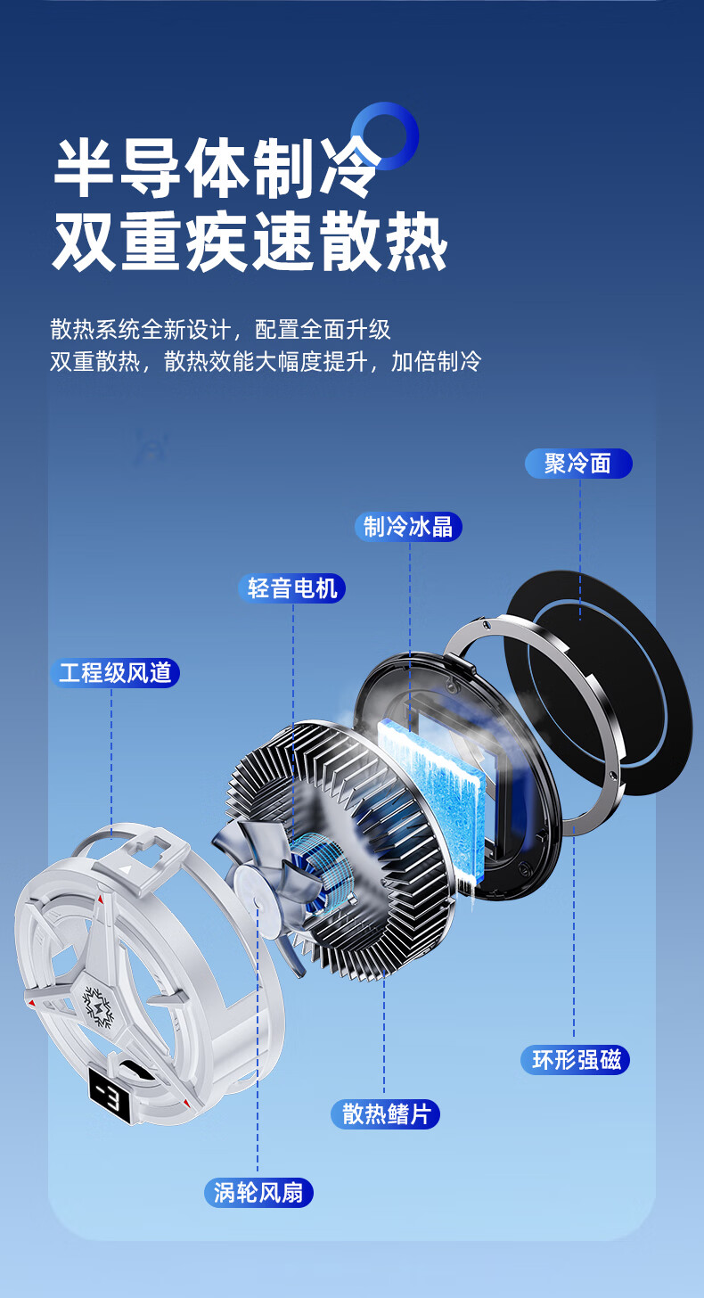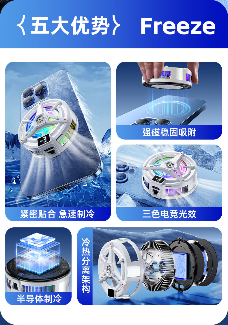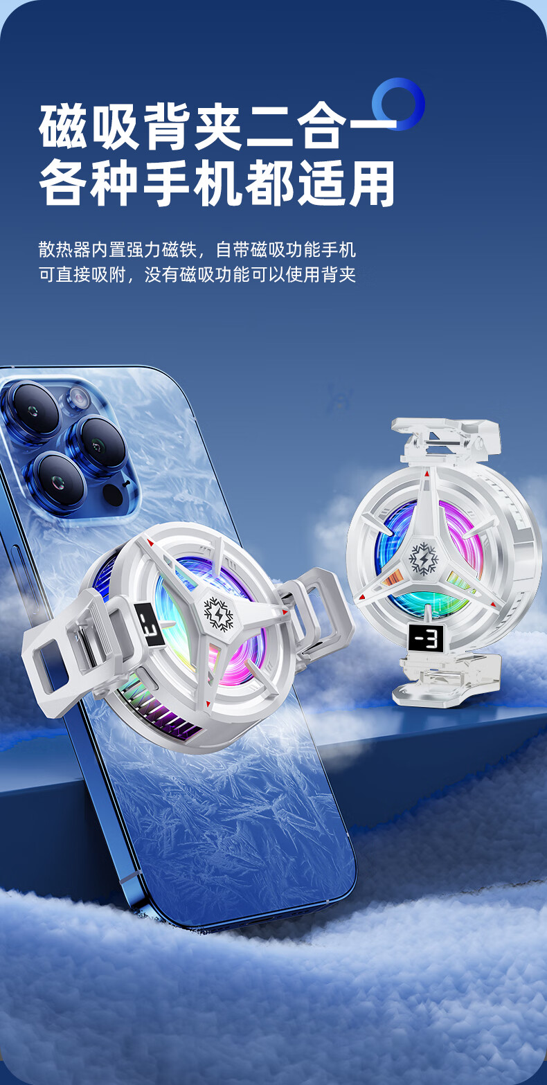 宾博(BINBO)【真能结冰】磁吸手机平板散热器直播专用平板降温神器制冷半导体背夹游戏ipad适用苹果iqoo黑鲨 【白色】磁吸背夹双用|半导体制冷