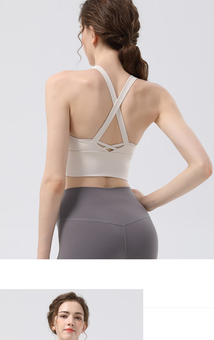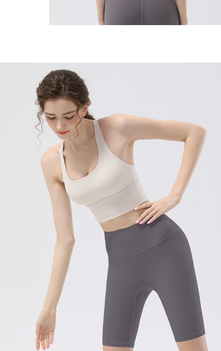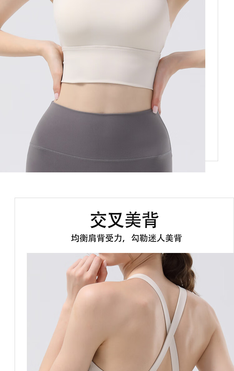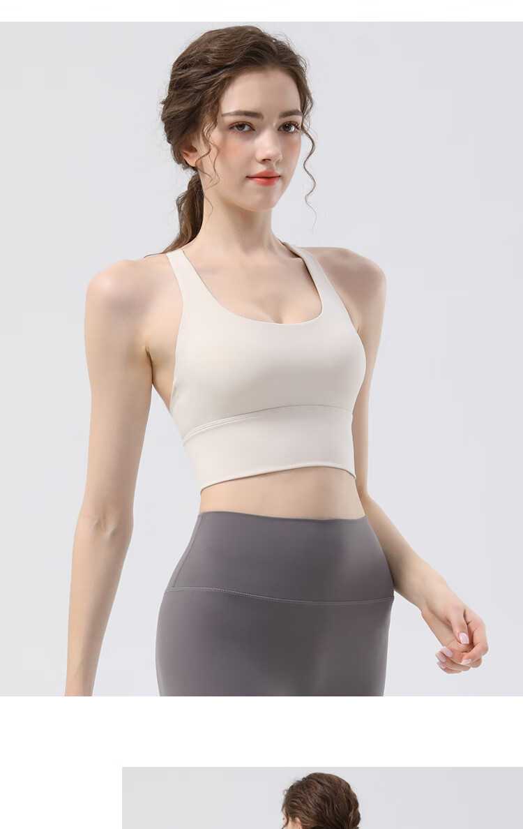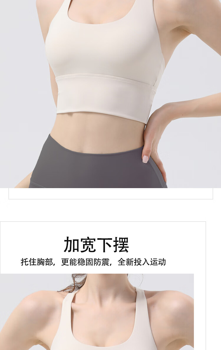 浪莎(LangSha)高强度运动内衣女防震防下垂大胸瑜伽背心一体式跑步训练健身文胸 奶杏色 2XL