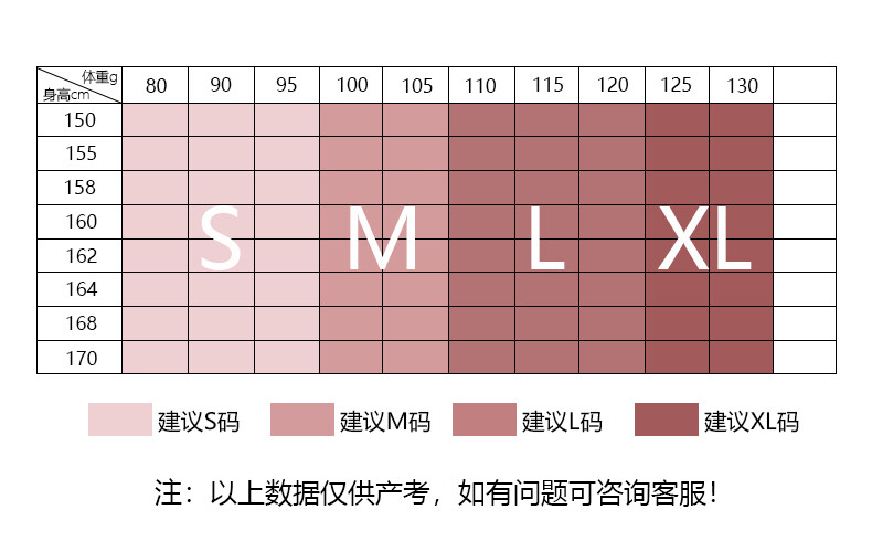China (cm) 160-165/84-86 165-170 / 88-90 167-172 / 92-96 168-173 / 98-102 170-176 / 106-110