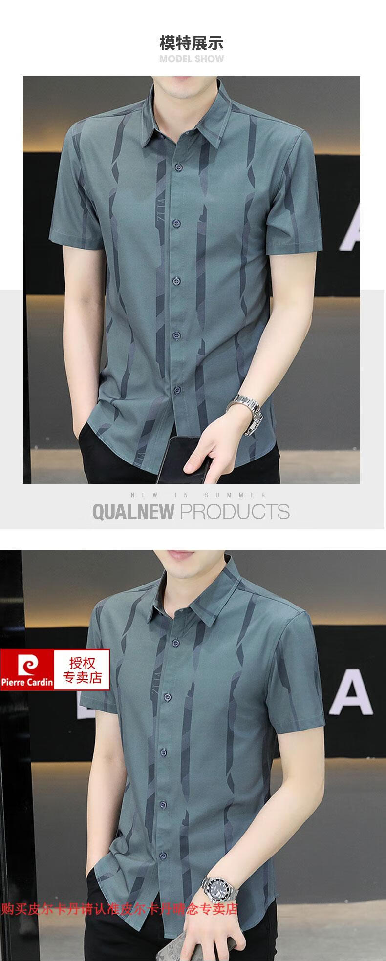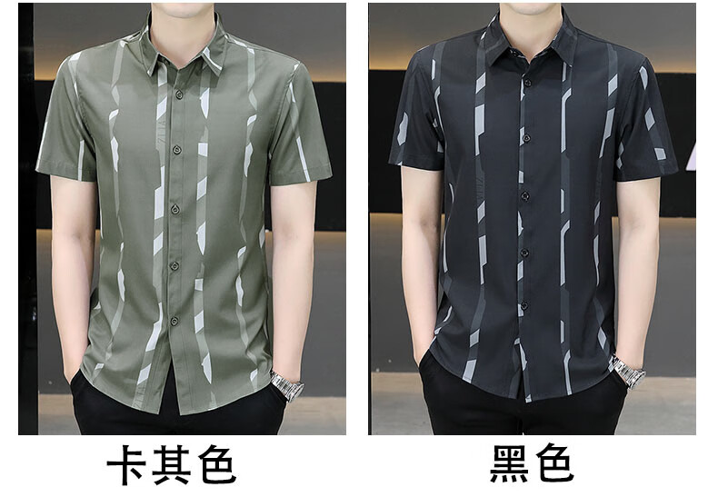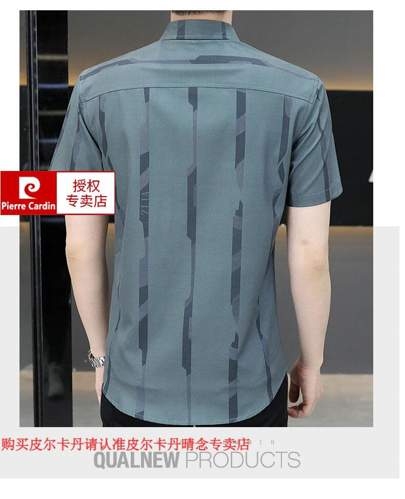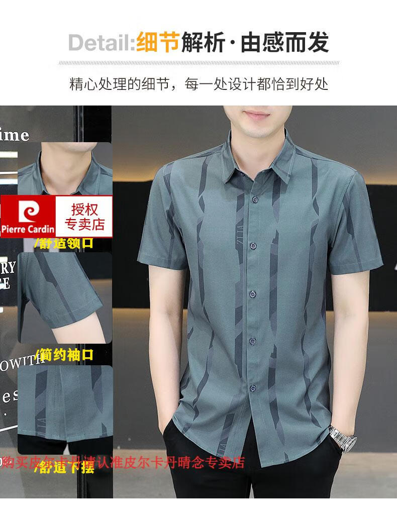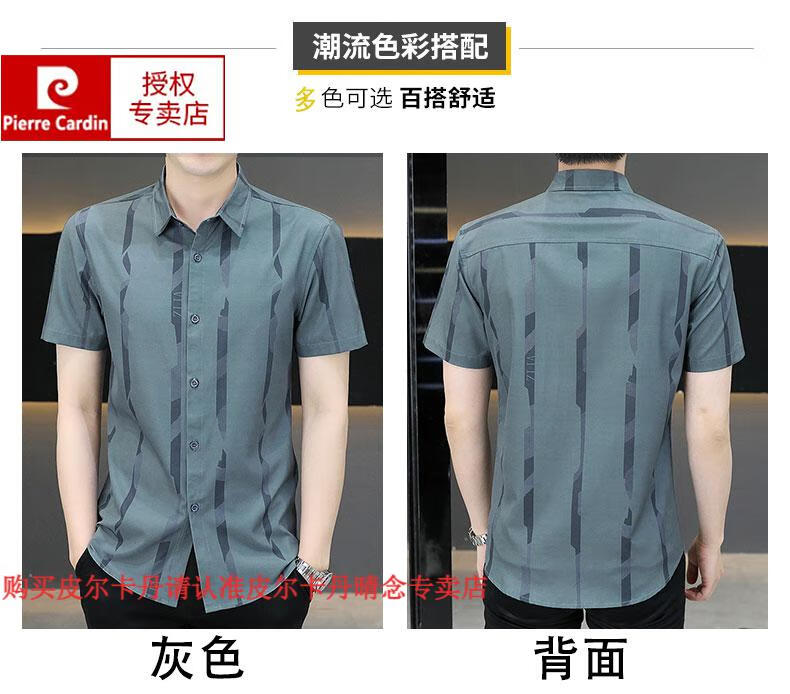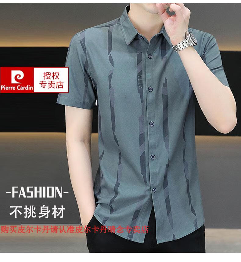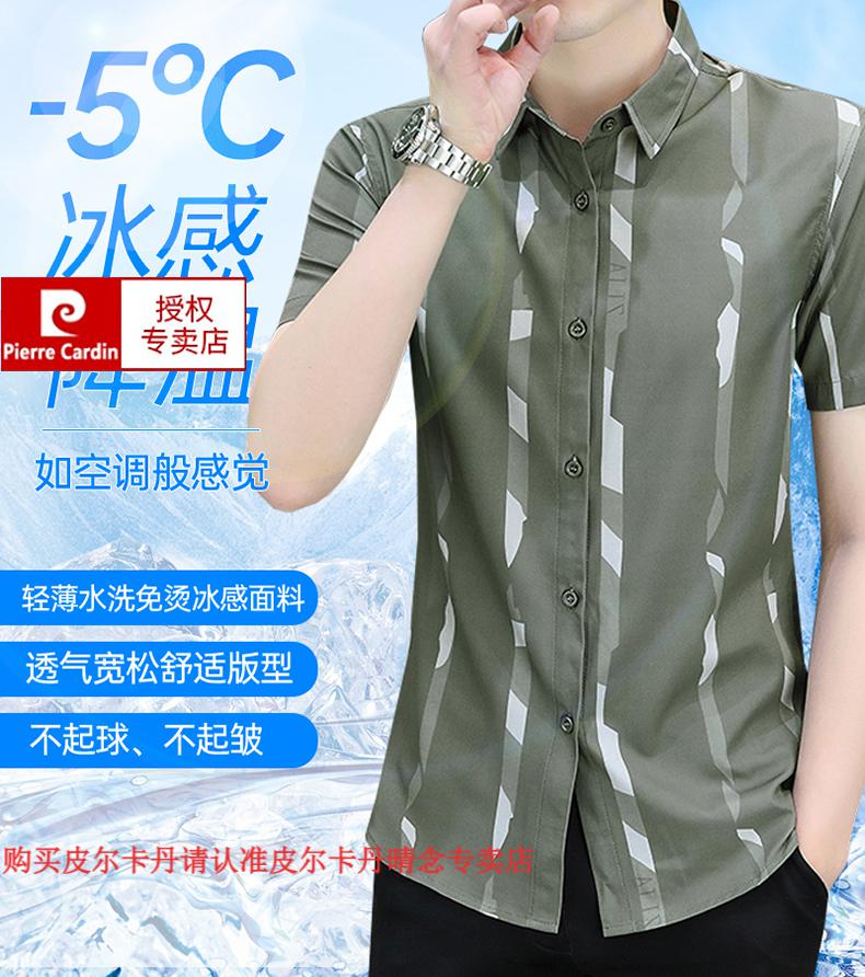 皮尔卡丹短袖衬衫男夏季冰丝凉感免烫上衣服帅气抗皱弹力条纹潮流衬衣针织 FJL7027深咖色 M 【95-110斤】