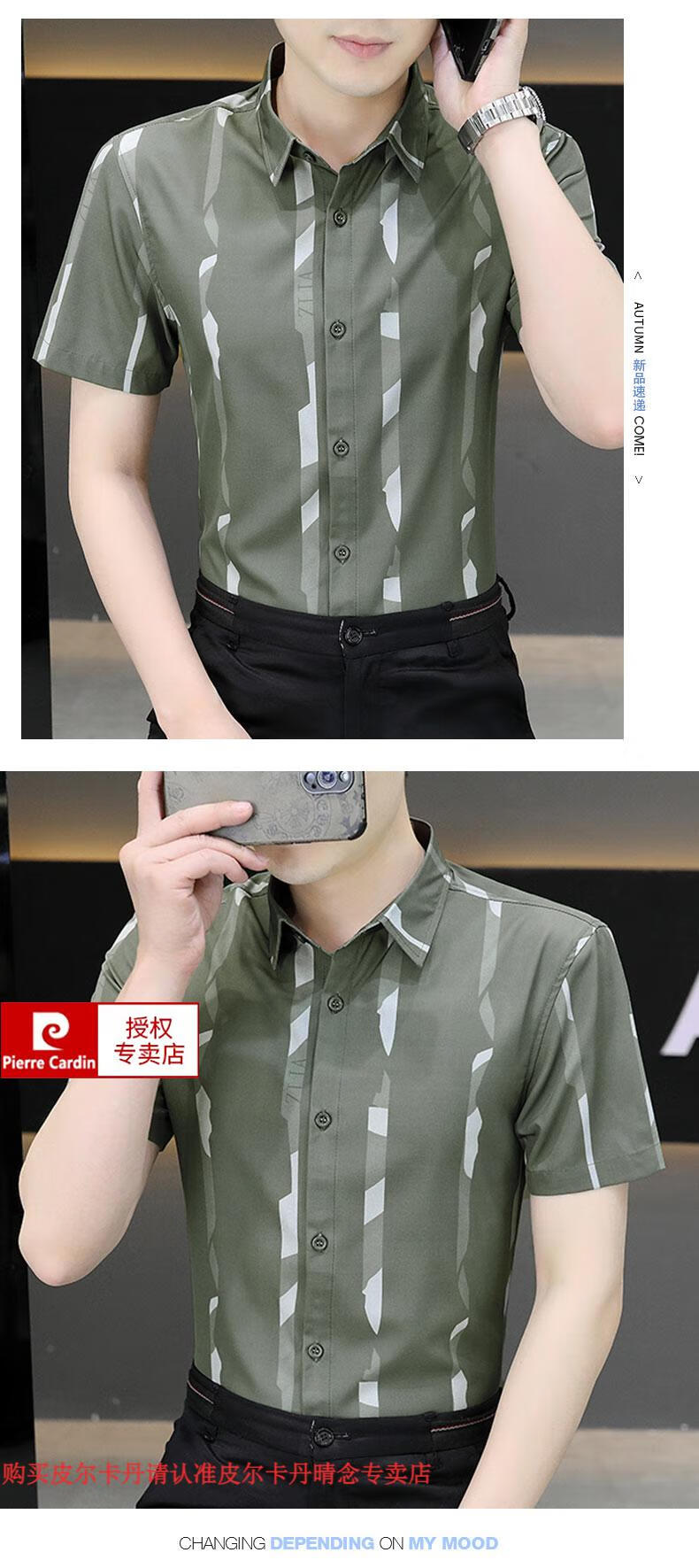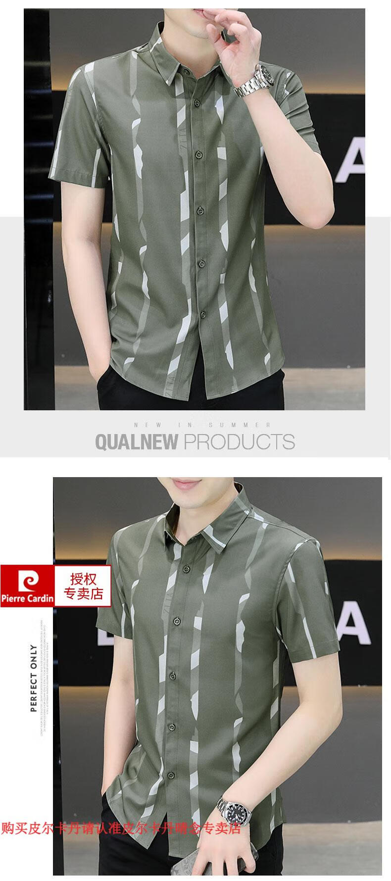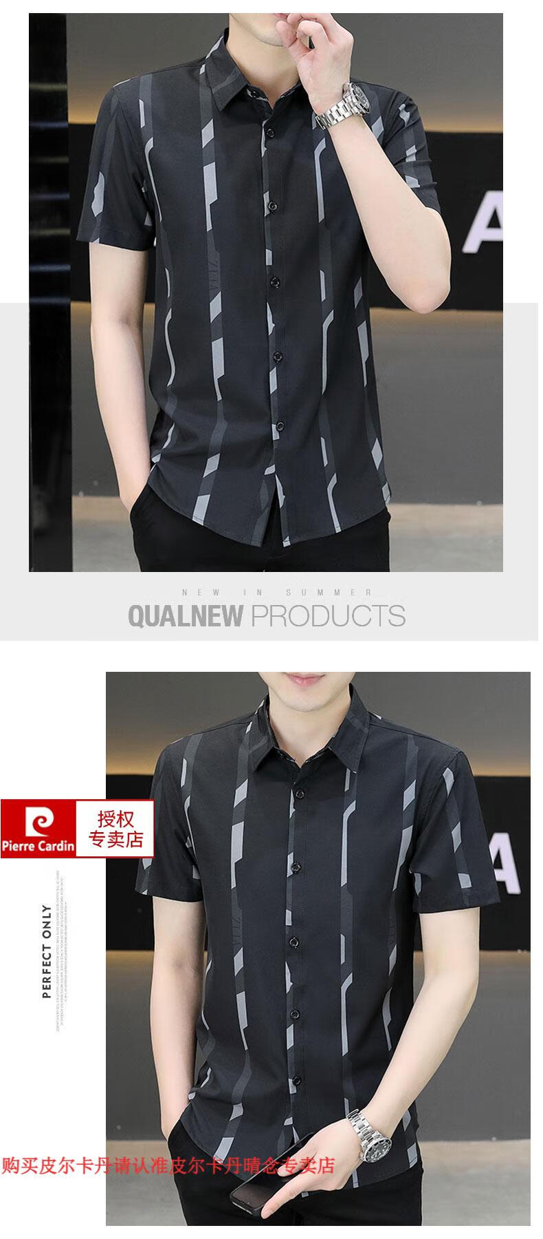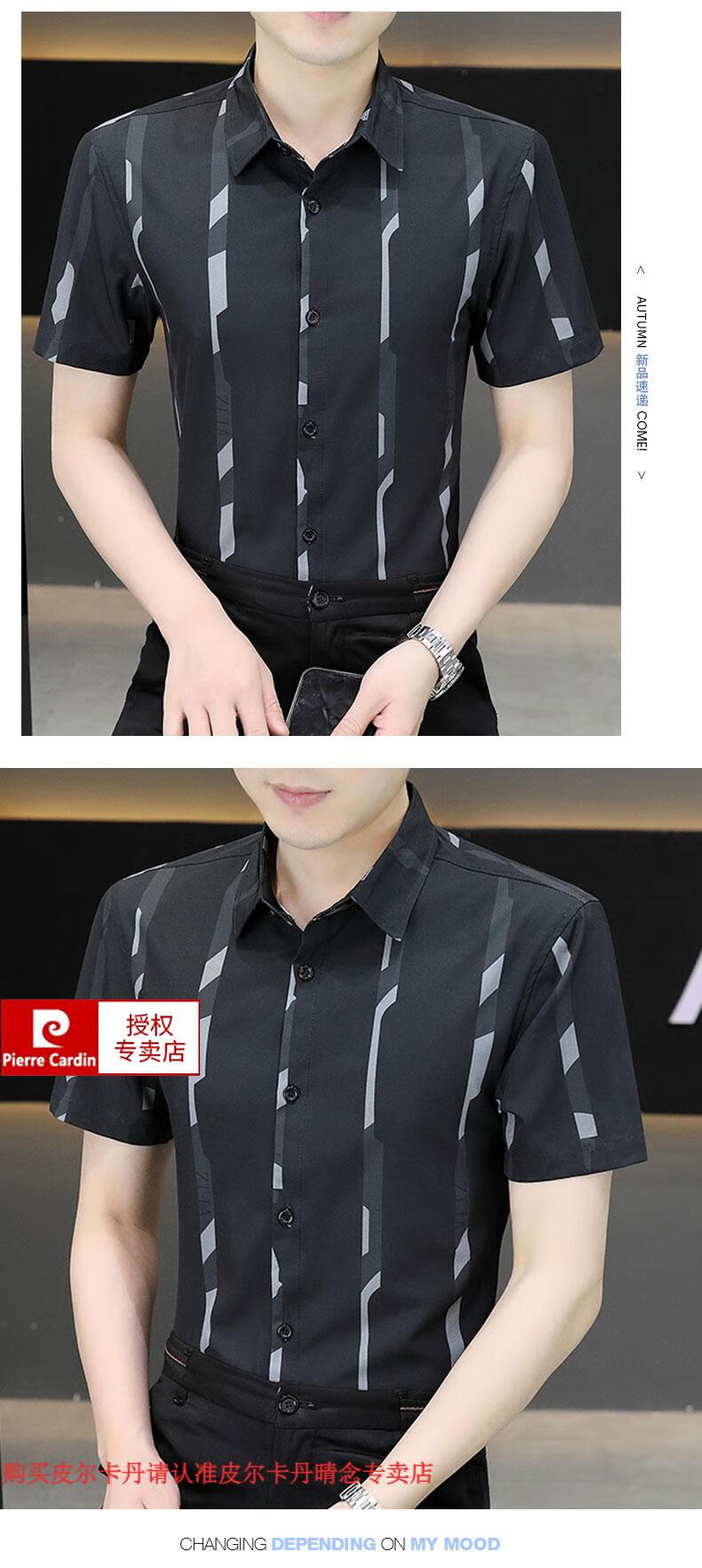 皮尔卡丹短袖衬衫男夏季冰丝凉感免烫上衣服帅气抗皱弹力条纹潮流衬衣针织 FJL7027深咖色 M 【95-110斤】