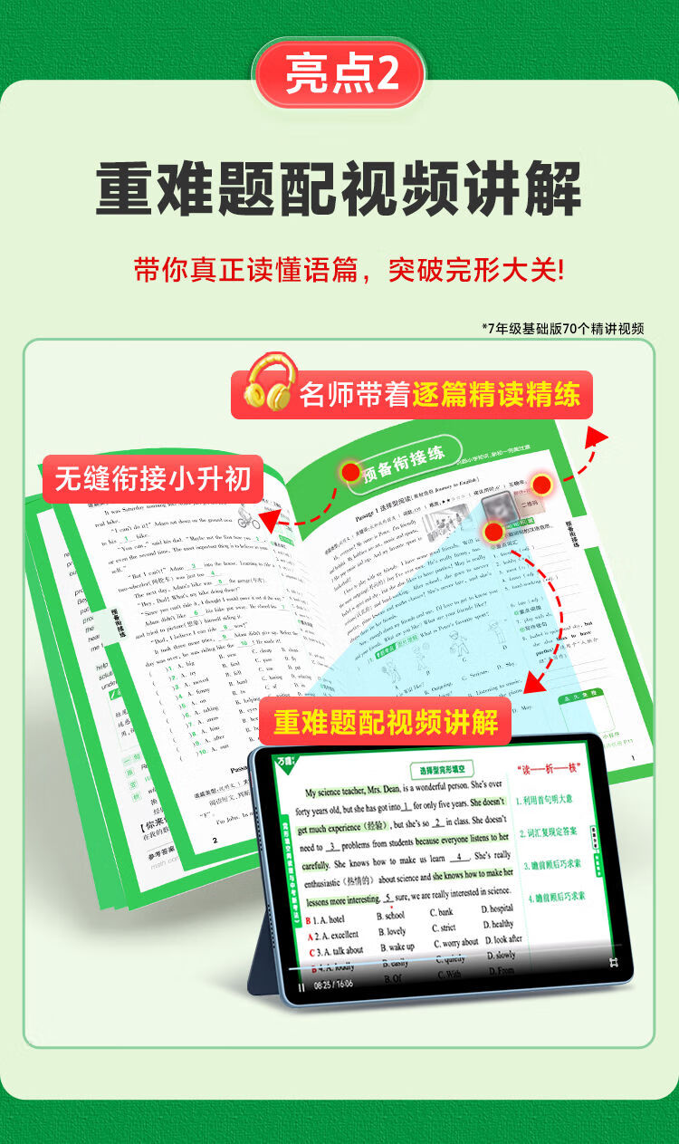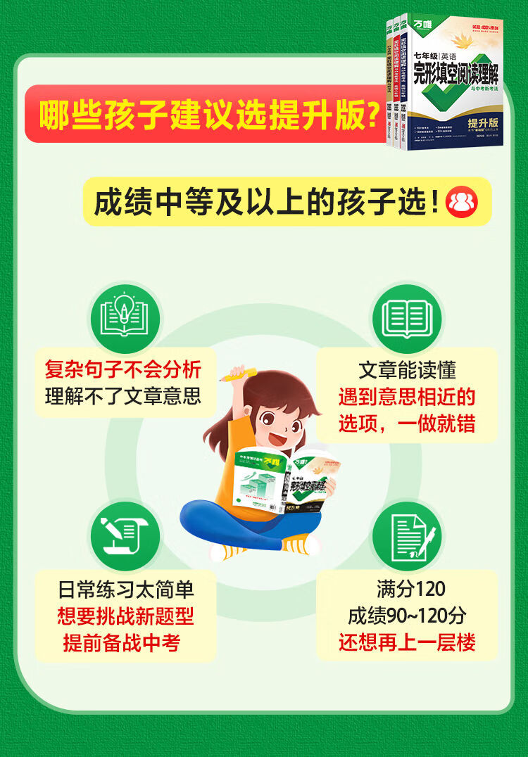 2025版英语完形填空阅读理解专项听力训练八九七年级初中完形与阅读时文初一初二初三练习词汇语法教材万维 完形阅读【基础版】1本 七年级/初中一年级