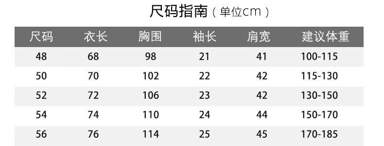 China (cm) 165 / 88-90 170 / 96-98 175 / 108-110 180 / 118-122 185 / 126-130