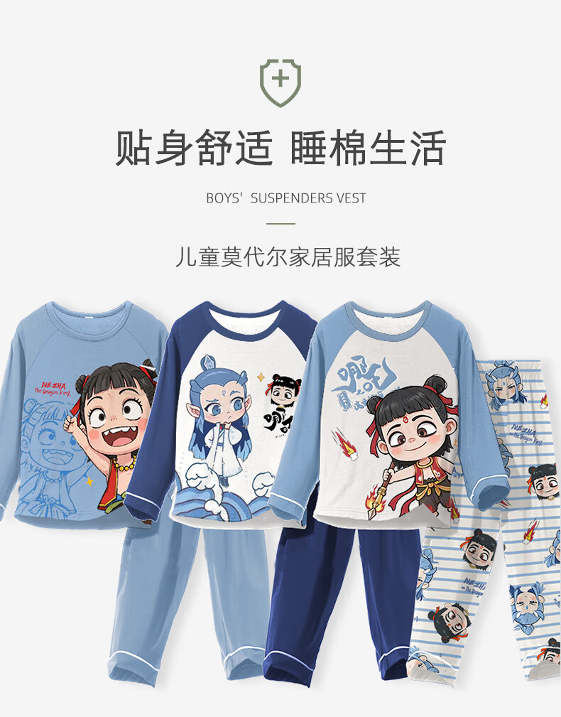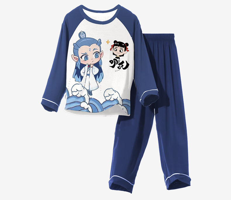 Disney (Disney) boys' pajamas Nezha 2025 new spring and autumn Modal children's long-sleeved thin section big children and little boys home clothes 2M--ST-12158 170 10 yards (110-120)cm