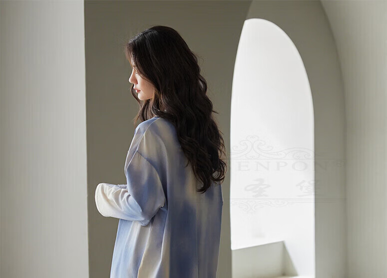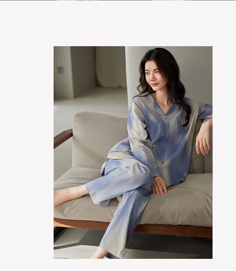 Pijamas de la marca Boshengbao para mujer 2025 nueva ropa para el hogar de algodón puro para todas las estaciones, manga larga, teñido anudado, 14117 azul teñido anudado (talla 160/M), peso recomendado 80-100 Jin Jin equivale a 0,5 kg
