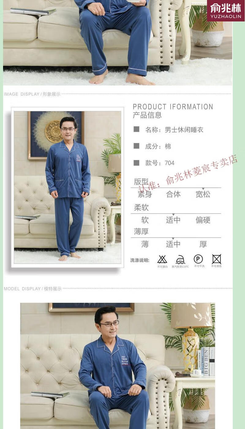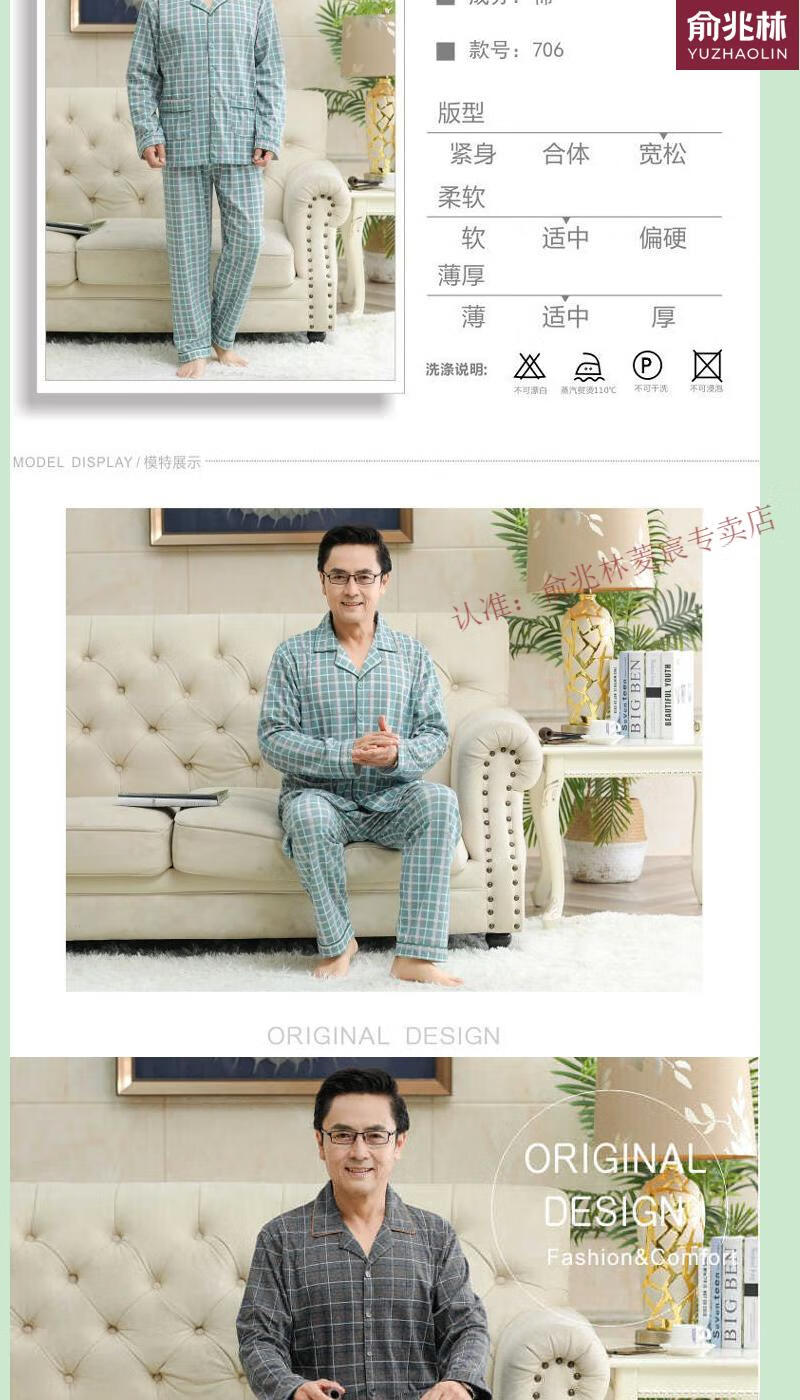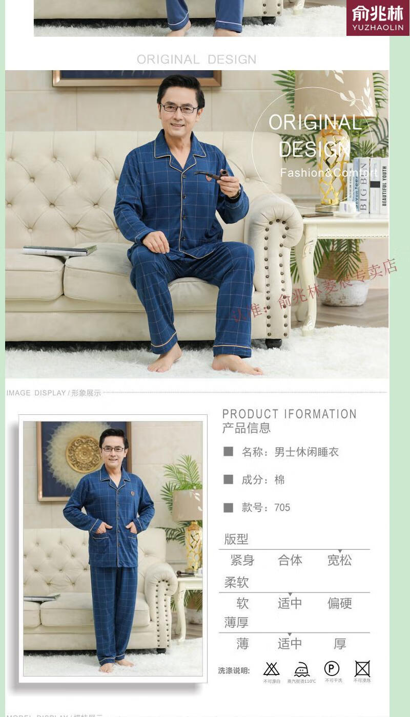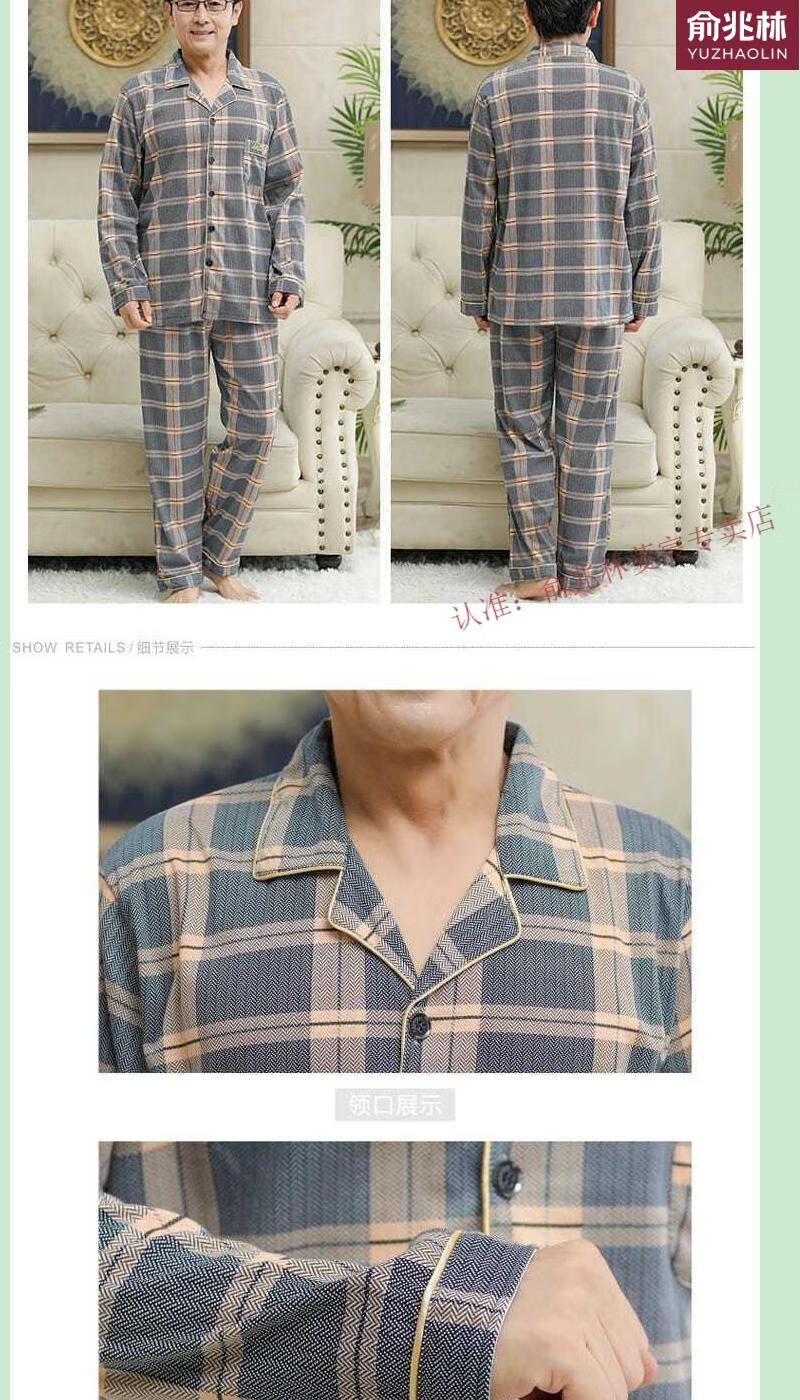 俞兆林(YUZHAOLIN)品牌睡衣中老年人男士长袖中年爸爸家居服夏冬男款春季家居服 829 XL