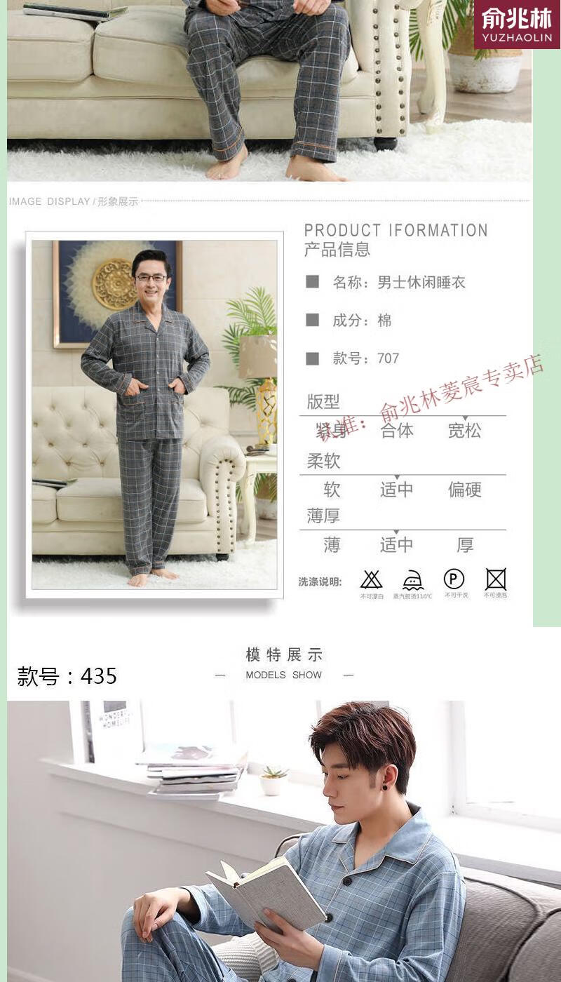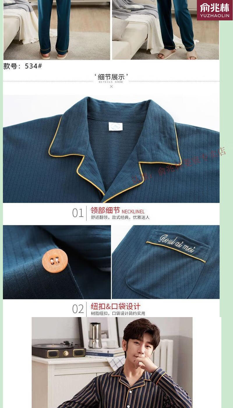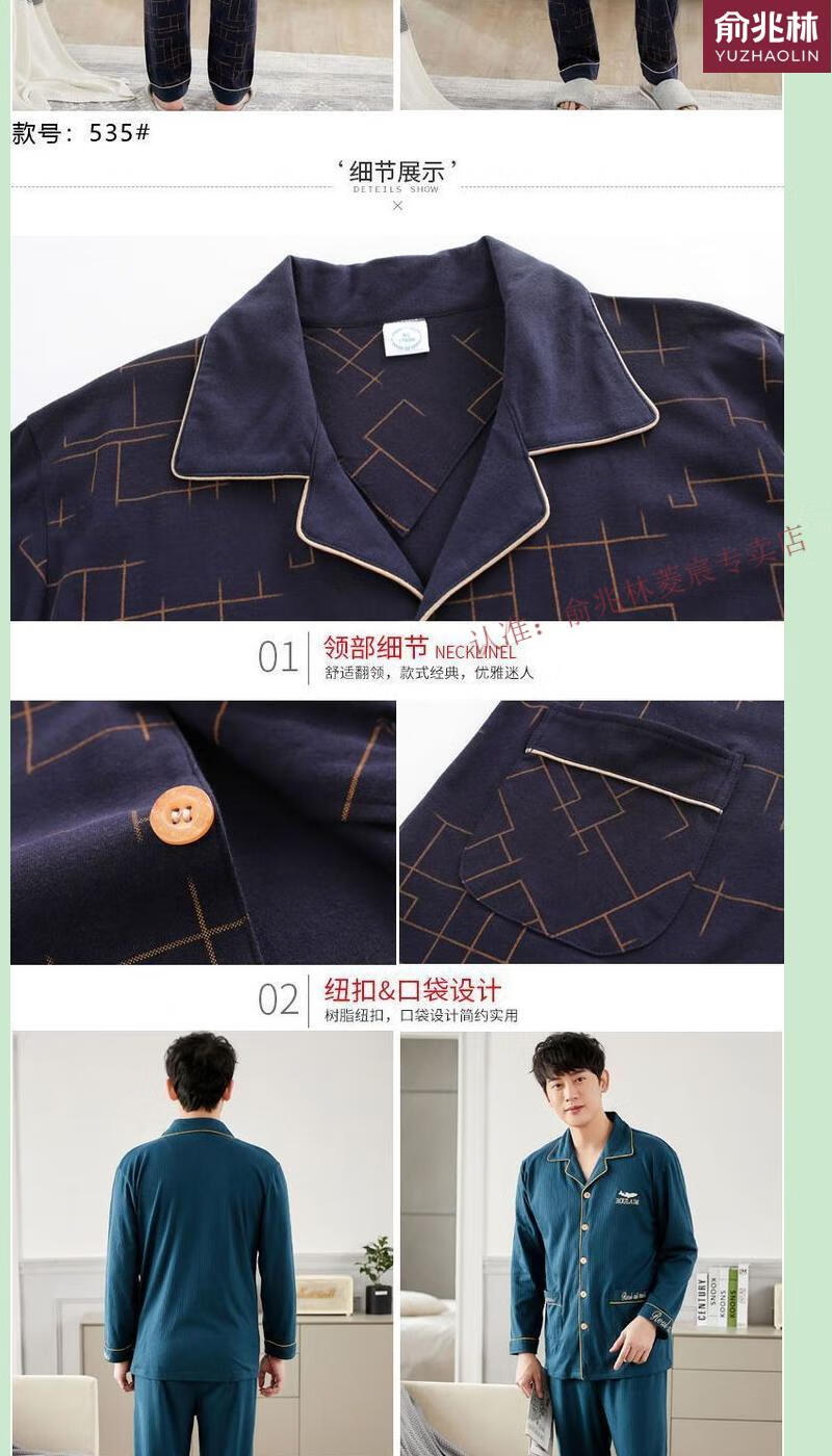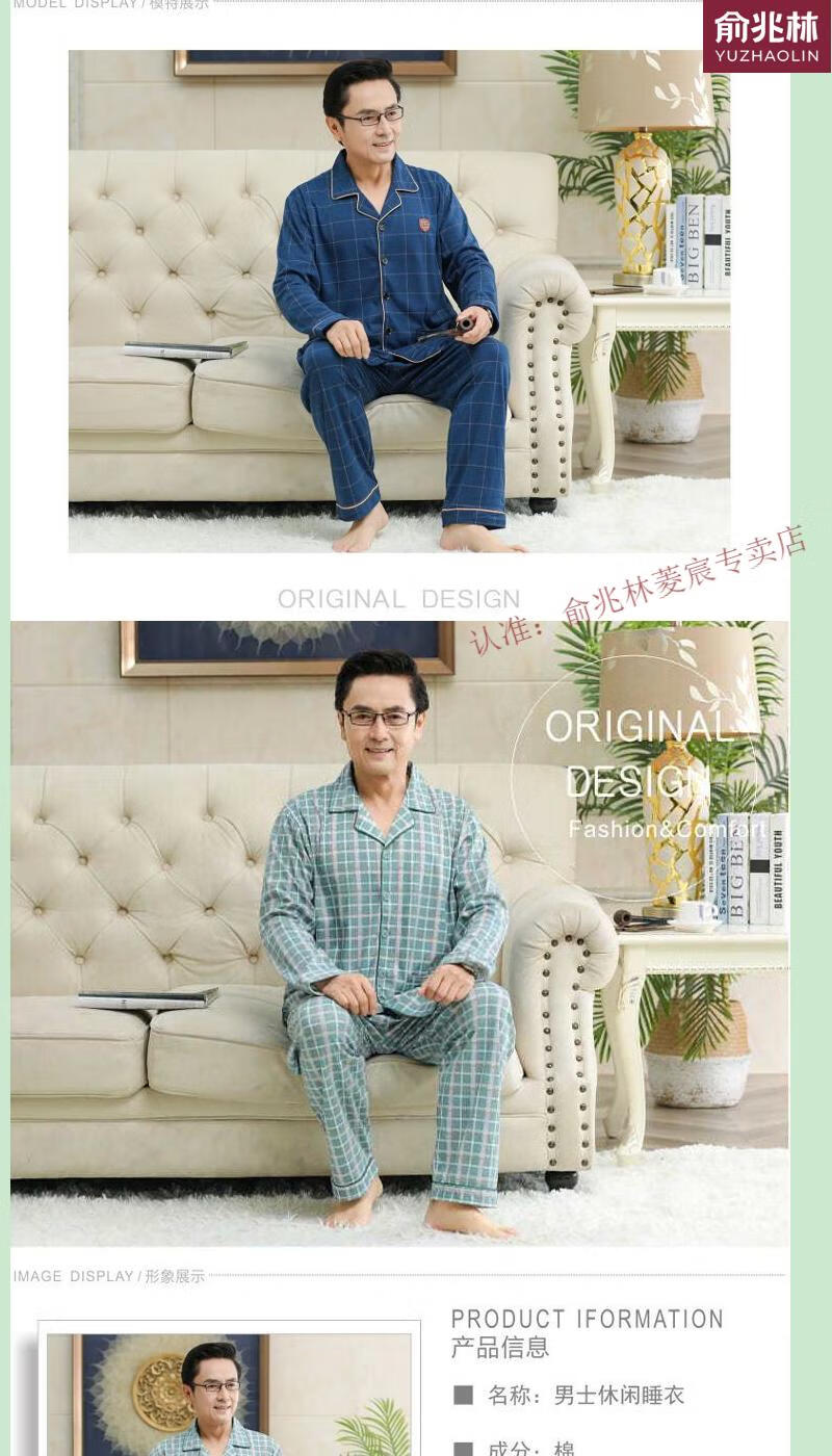 俞兆林(YUZHAOLIN)品牌睡衣中老年人男士长袖中年爸爸家居服夏冬男款春季家居服 829 XL