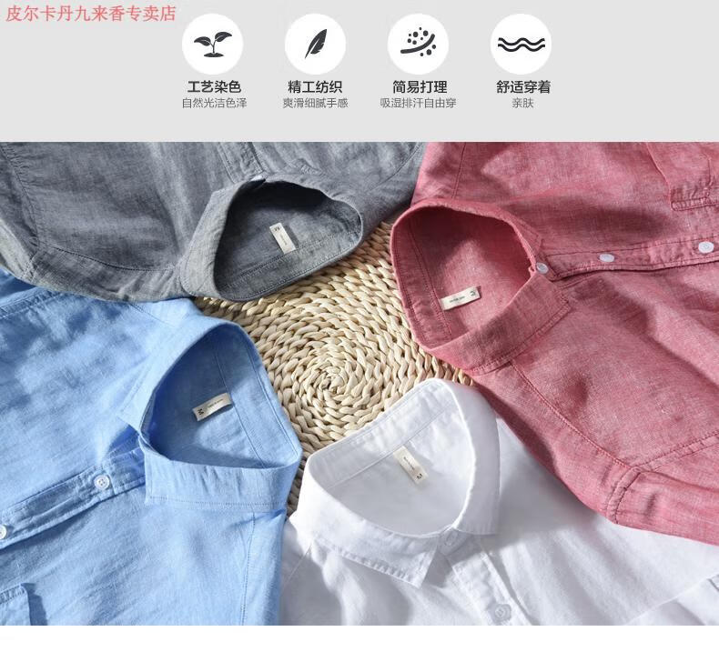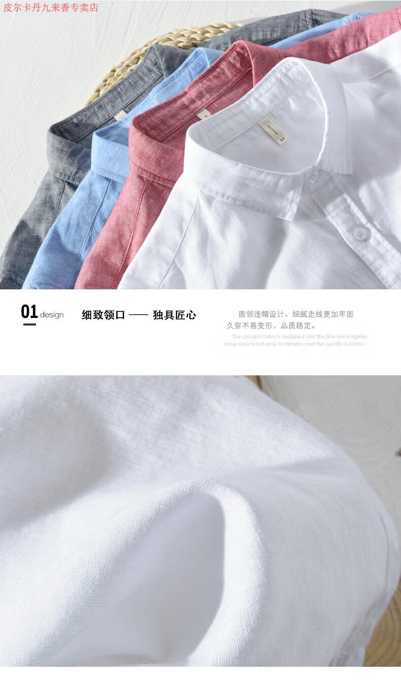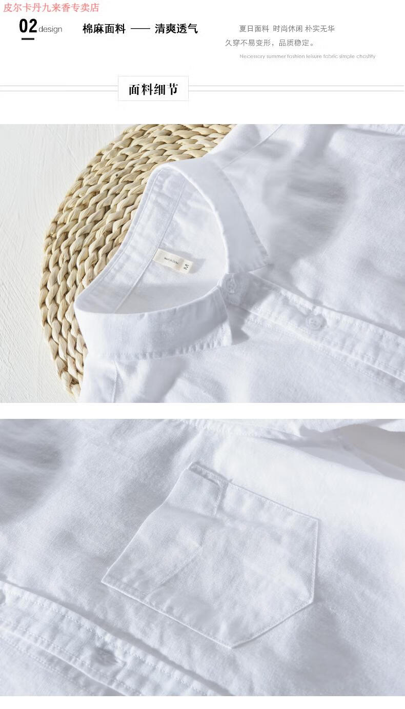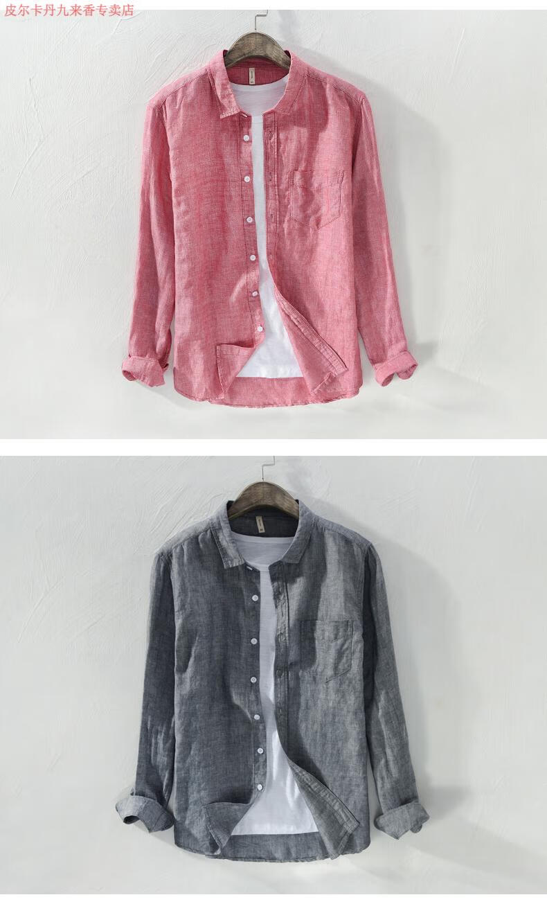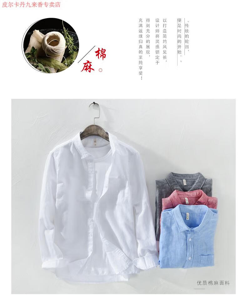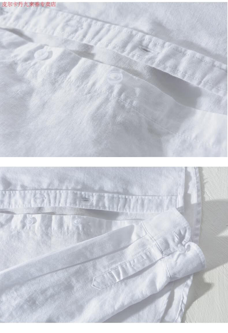 皮尔卡丹(pierre cardin)春夏季亚麻衬衫外套男长袖宽松休闲棉麻衬衣薄款上衣复古麻布衣服 YY9207白色 M 120斤以内