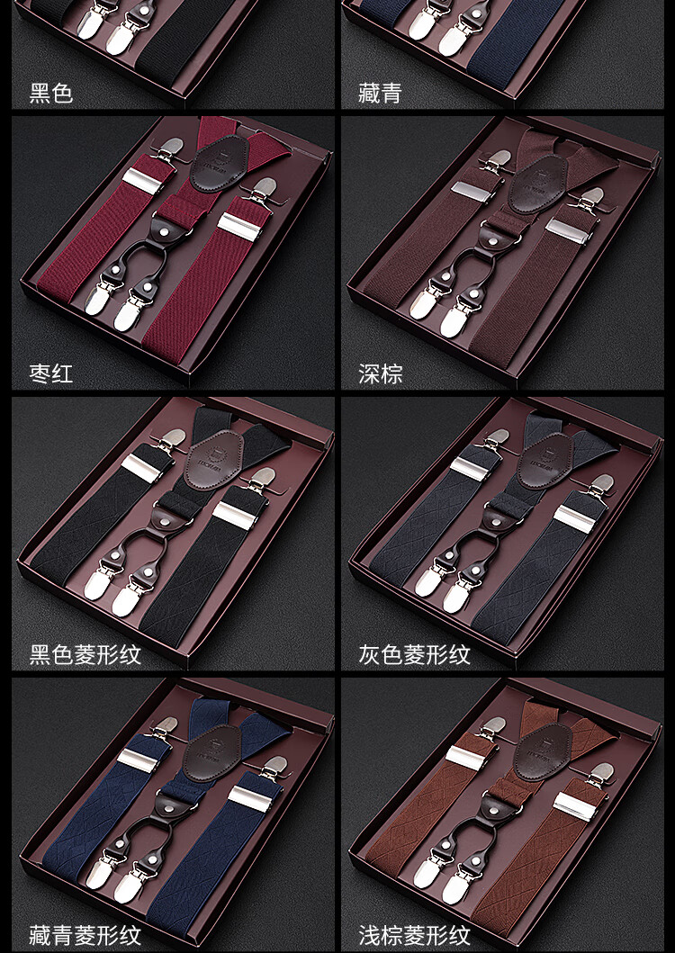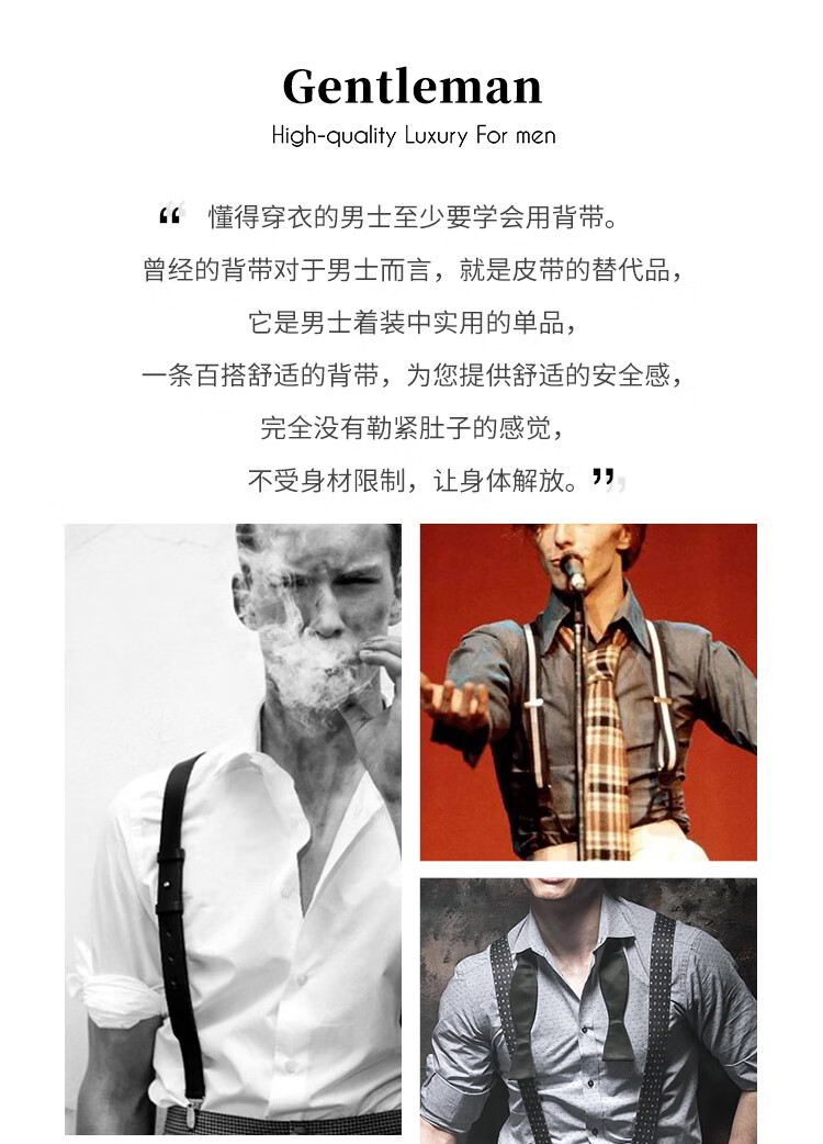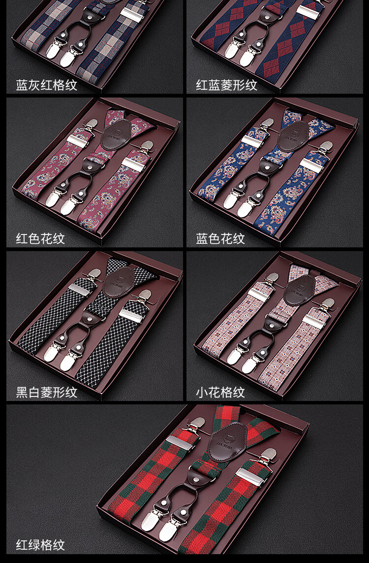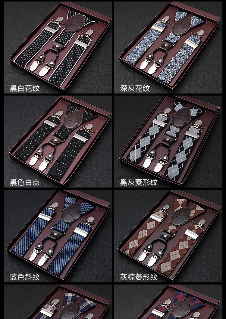 西服衬衫背带夹扣男士正装爸爸老公商务英伦防滑 黑灰菱形纹