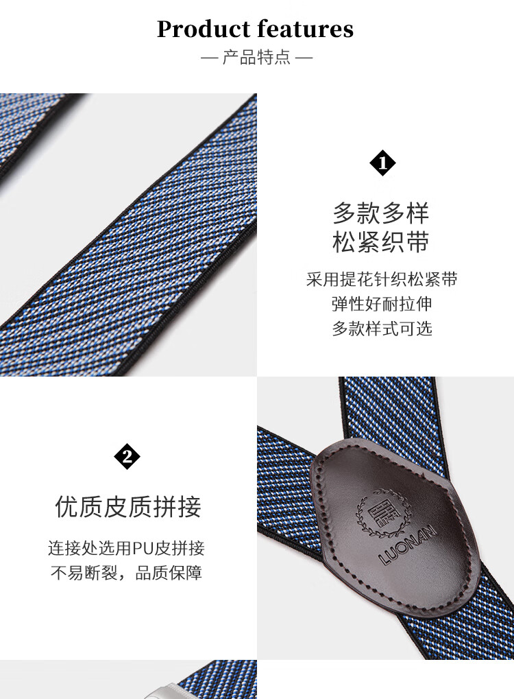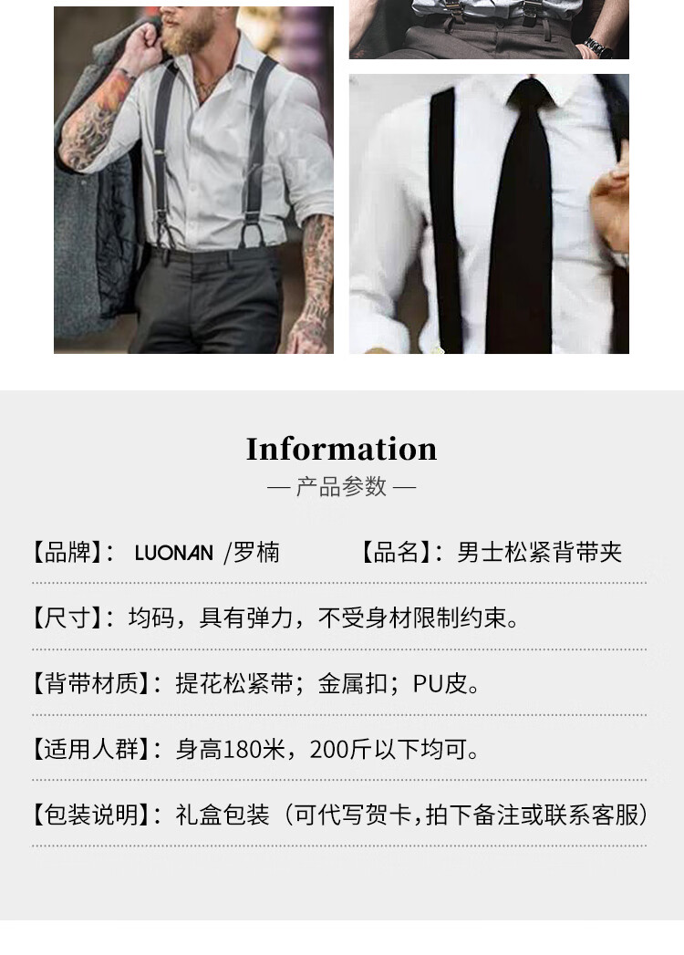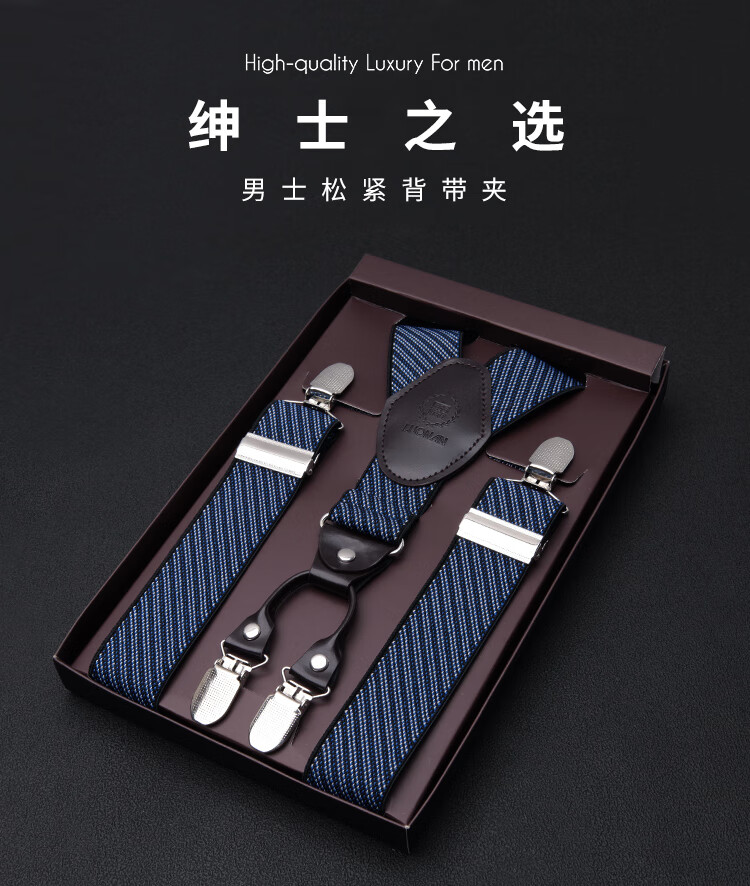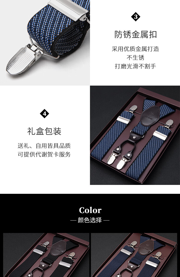 西服衬衫背带夹扣男士正装爸爸老公商务英伦防滑 黑灰菱形纹