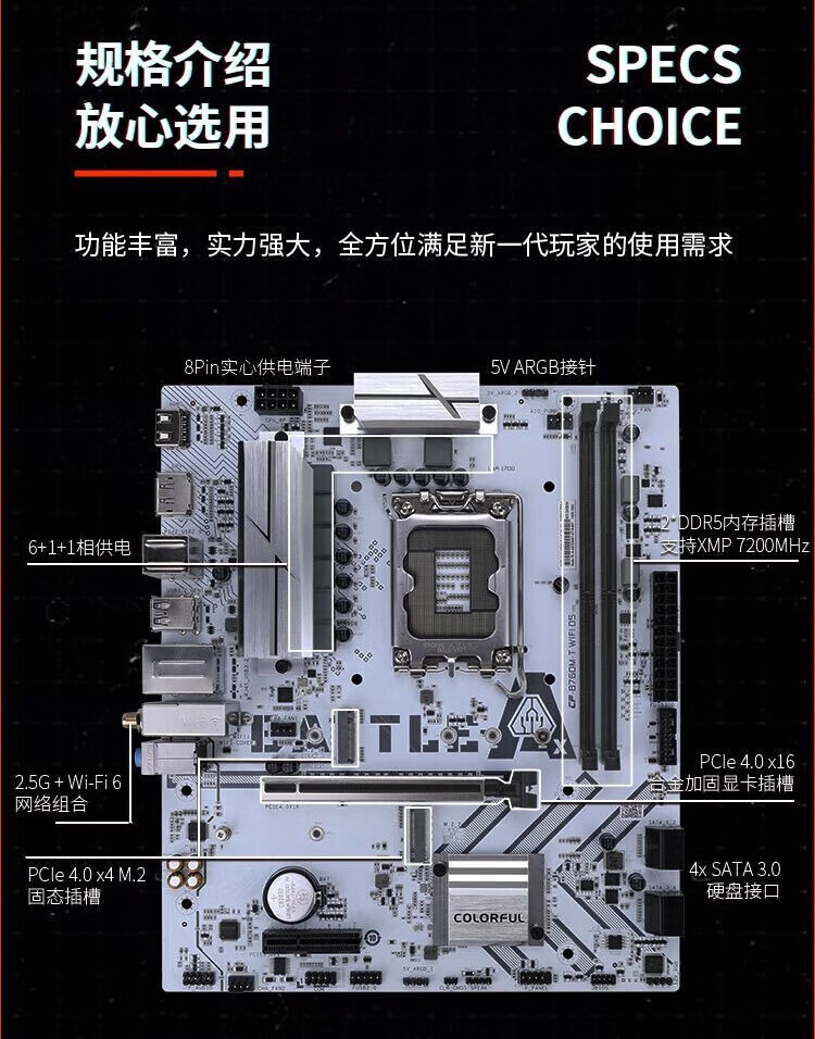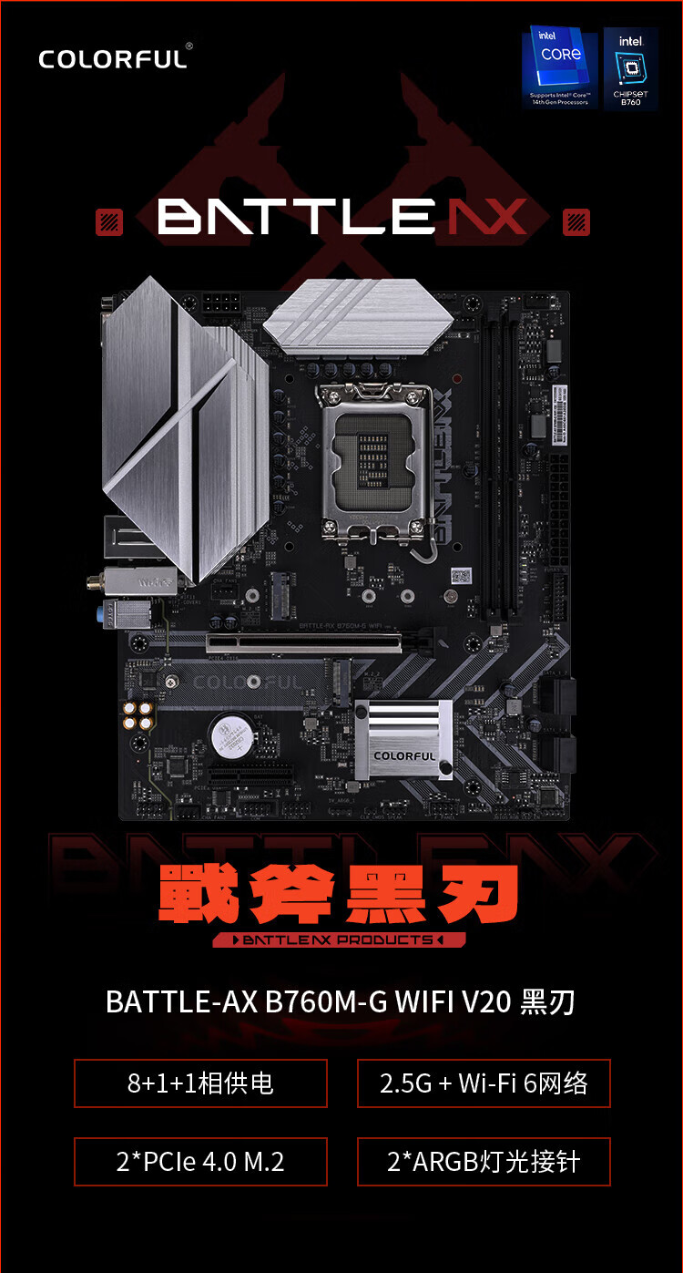 七彩虹B760M/H610主板 搭配 英特尔 酷睿i5 14600KF/14490F/12490F 板U套装 DIY组装电脑电脑CPU主板套装 B760M-G WIFI D4 小黑刃 i5 14600KF【14核20线程】原盒