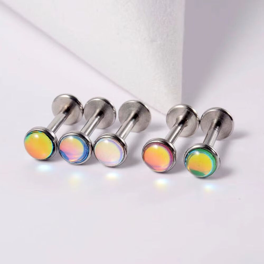 梅派直杆幻彩多色闪光唇钉直钉不锈钢内螺纹耳钉耳骨钉穿刺饰品SN2679 白闪光 杆长8mm杆粗1.2mm球4mm