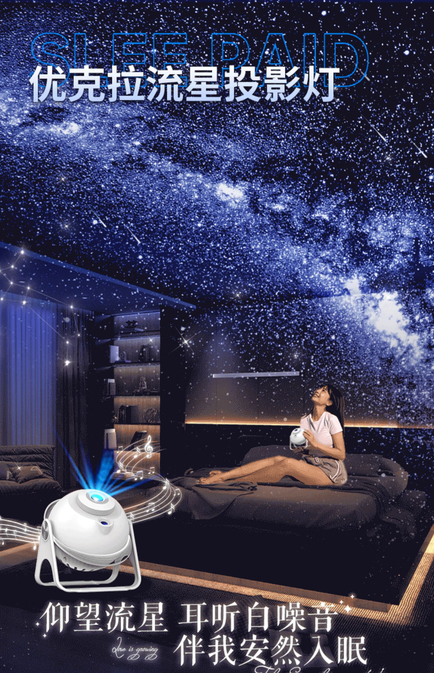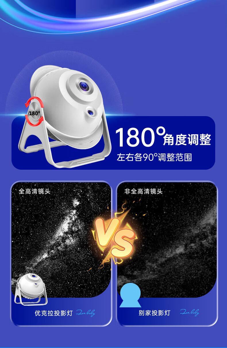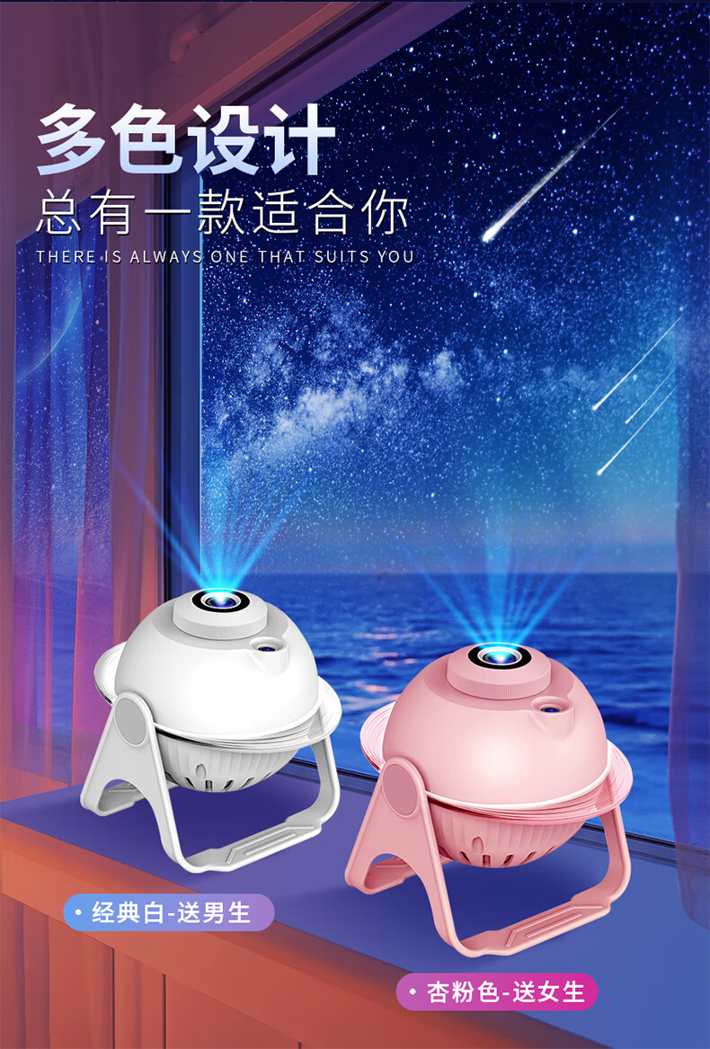 优克拉星空投影灯3-6岁儿童过家家玩具女孩子7生日礼物12卧室14梦幻夜灯 【流星款】插电基础款-7张灯片