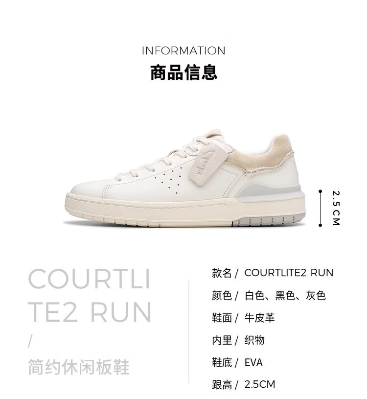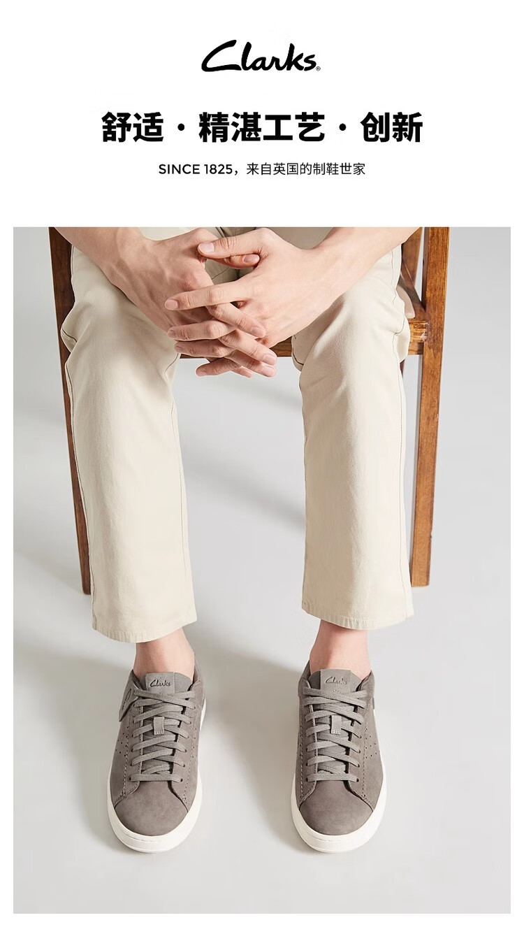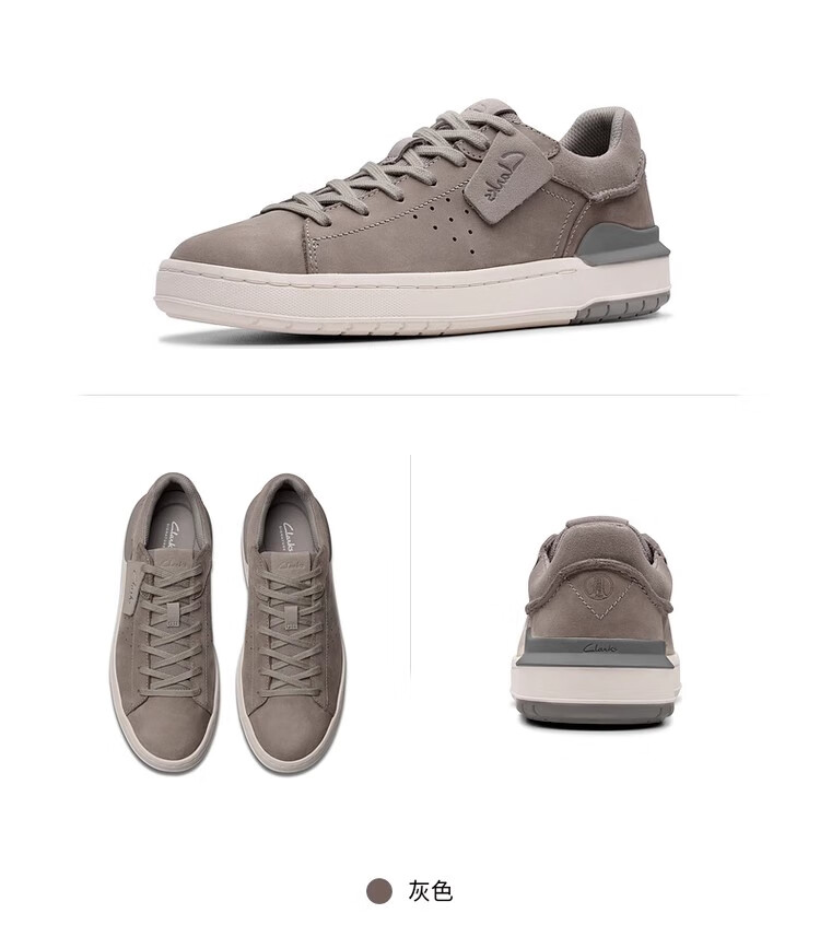 ClarksCourtlite2 Run男鞋春夏轻盈厚底简约潮流运动休闲板鞋 灰色 39