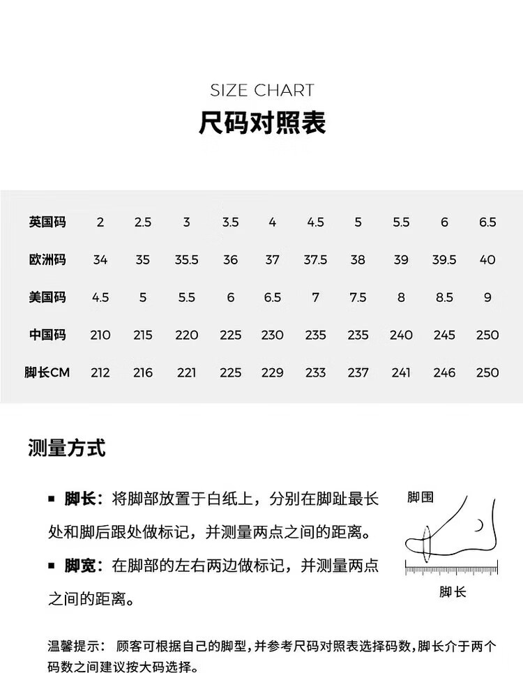 China (cm) 36 - 37 38 - 39 40 - 42 43 - 44 45 - 47