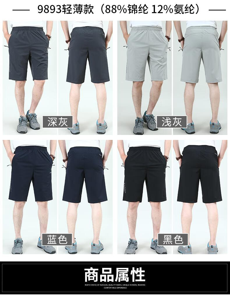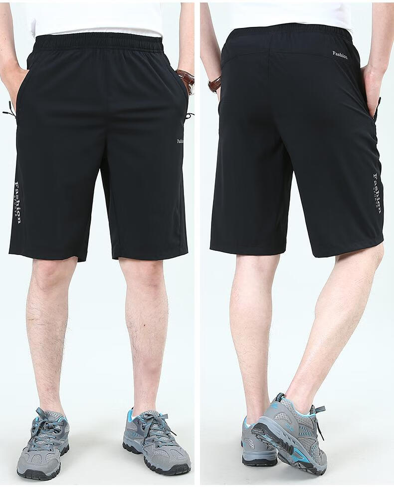 罗蒙(ROMON)冰丝短裤男夏外穿宽松休闲裤子速干男士五分裤夏季薄款2025新款潮 9893A[黑色]冰丝 L 175规格(115-130斤)
